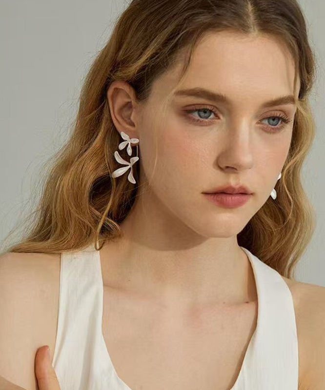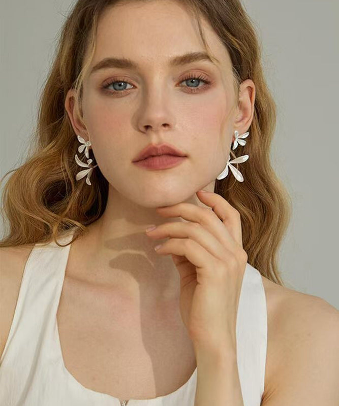Ohrstecker im Orchideen-Design aus Seide, Kupfer, vergoldetem Emaille-Tropfenglasur