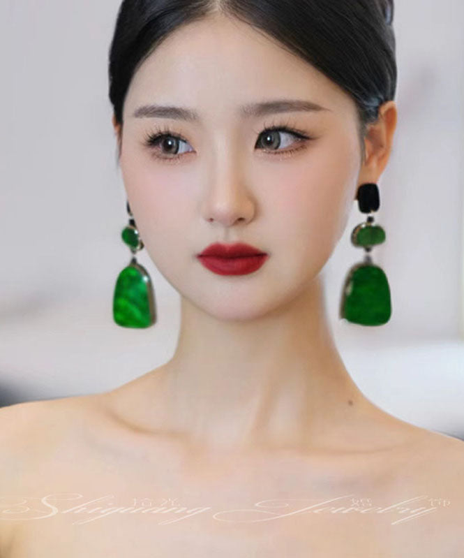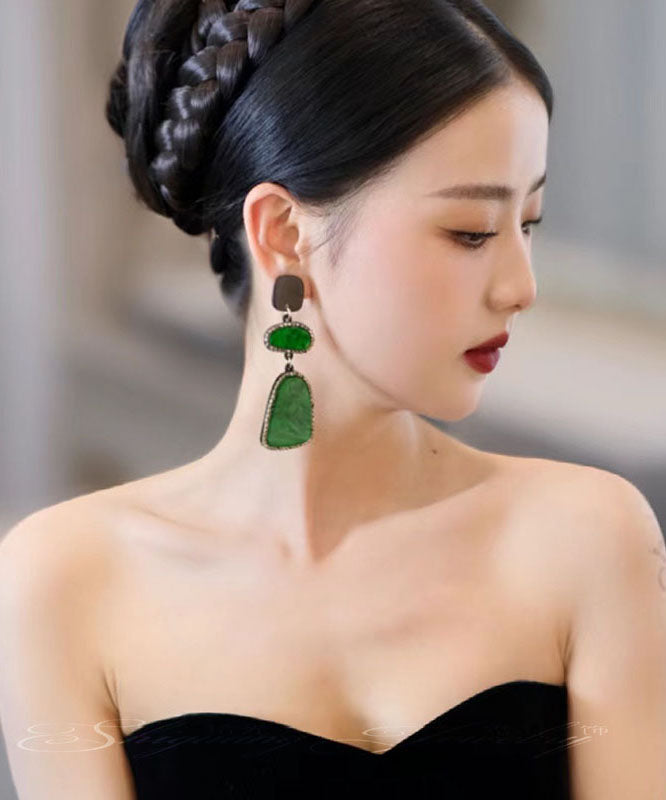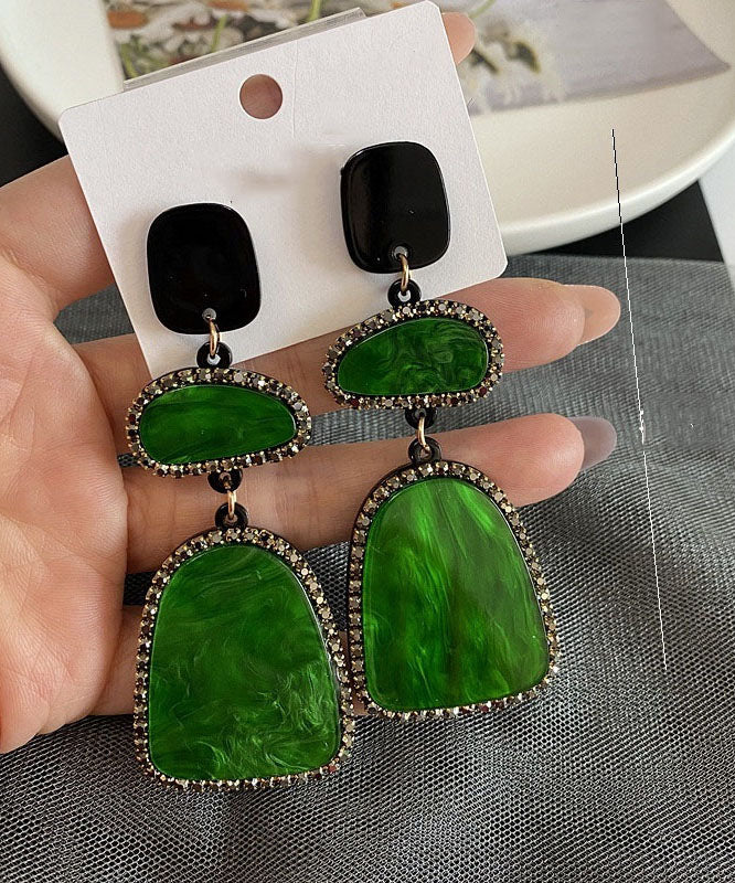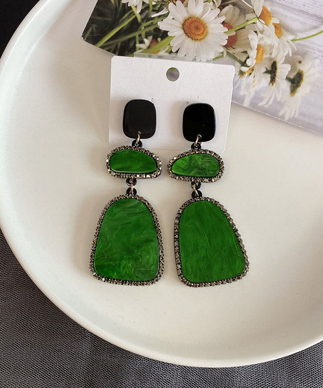 Stilvolle grüne Tropfenohrringe aus Acryl mit geometrischem, asymmetrischem Design