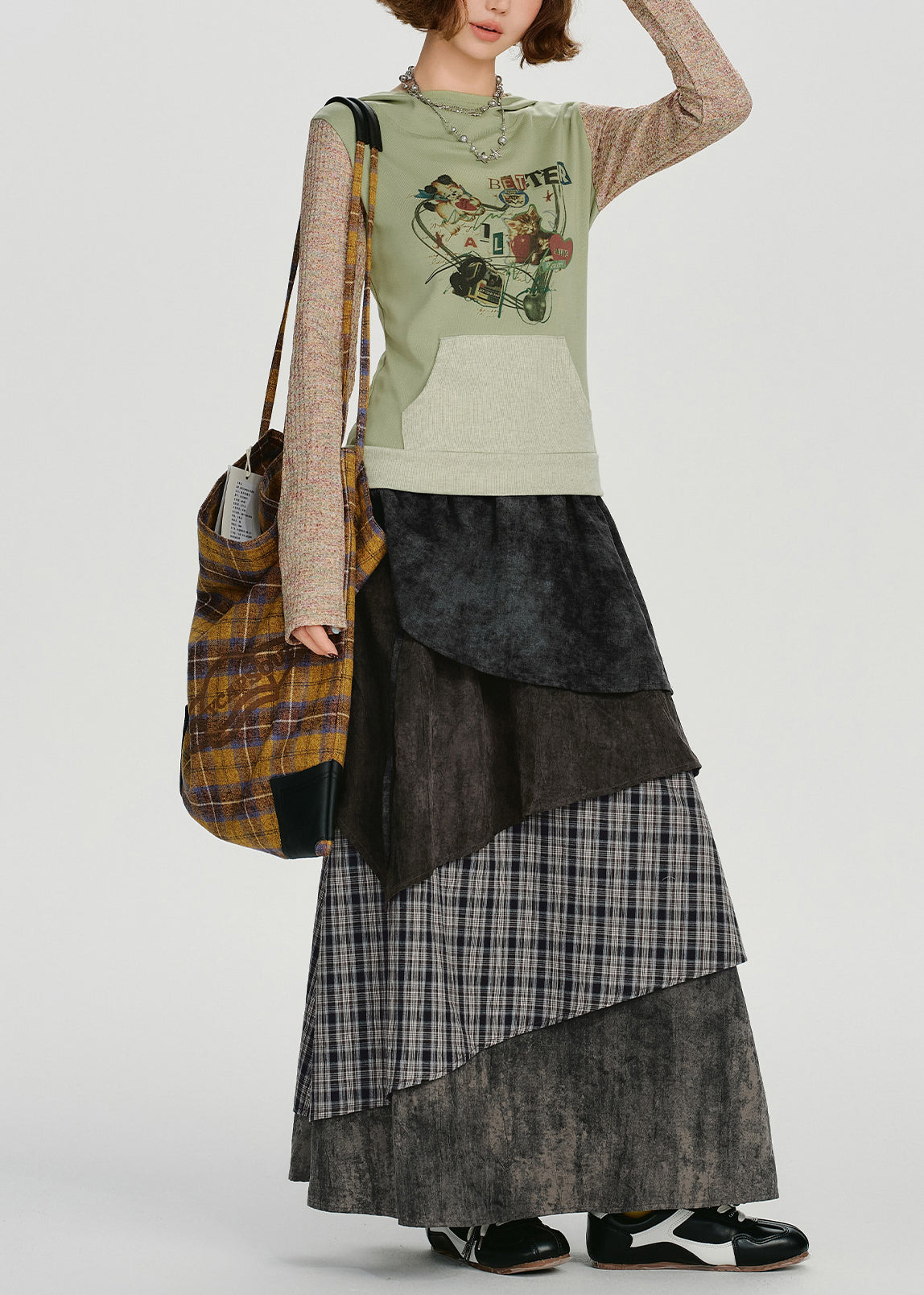 Stilvolles grünes Kapuzen-Sweatshirt aus Patchwork-Baumwolle, Frühlingsoberteil