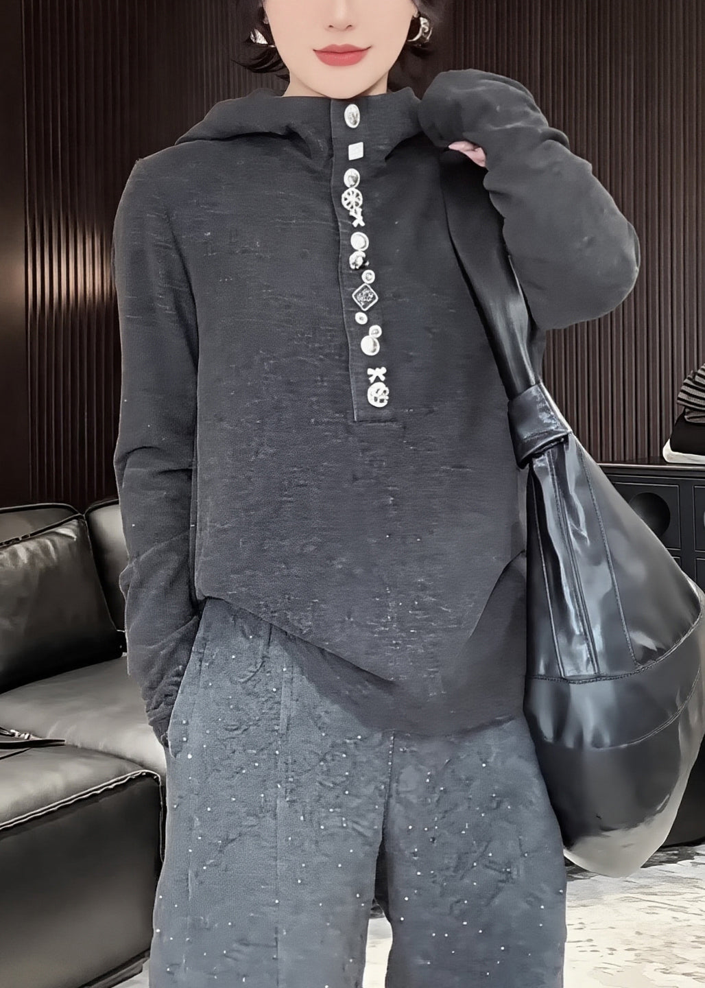 Stilvoller grauer Kapuzenpullover aus Baumwolle für den Frühling