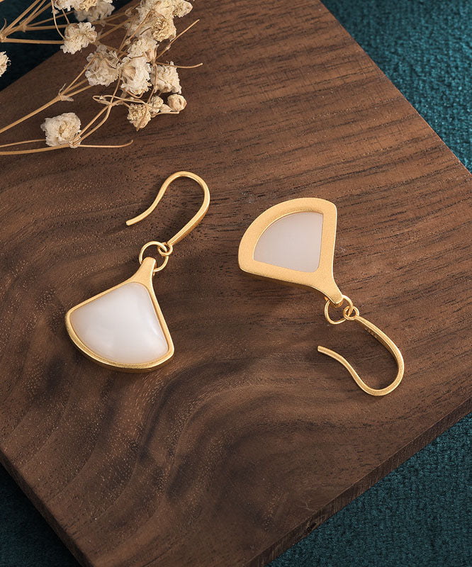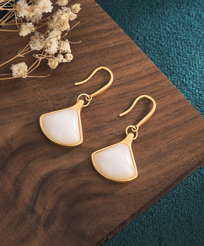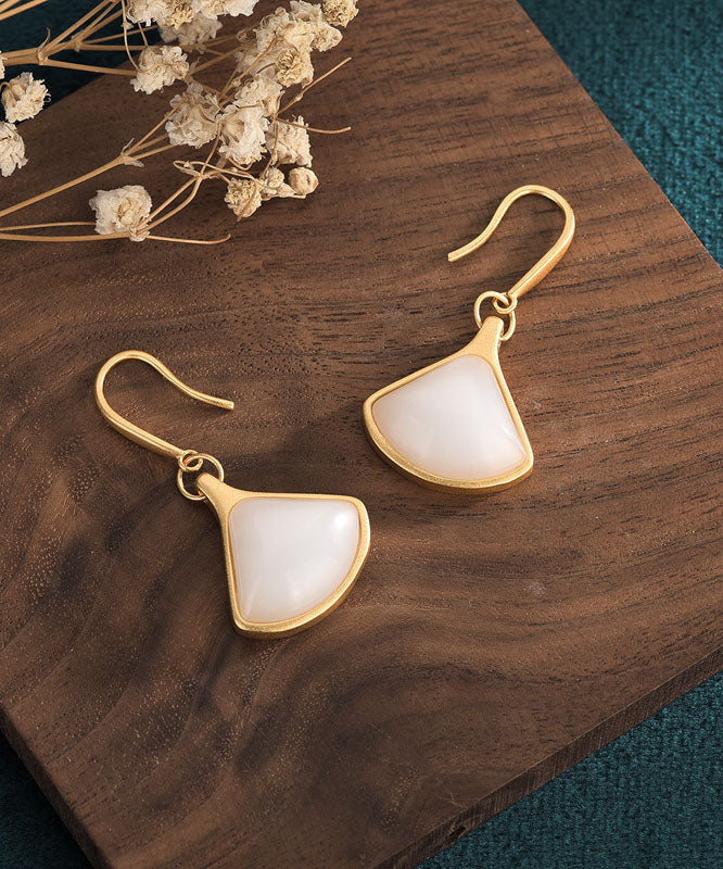 Stilvolle weiße antike Gold Jade fächerförmige Tropfen Ohrringe
