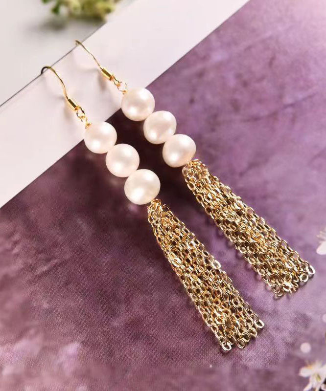 Stilvolle weiße Sterling Silber Overgild Perle Quaste Tropfen Ohrringe