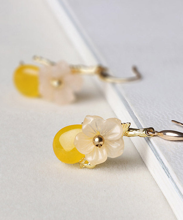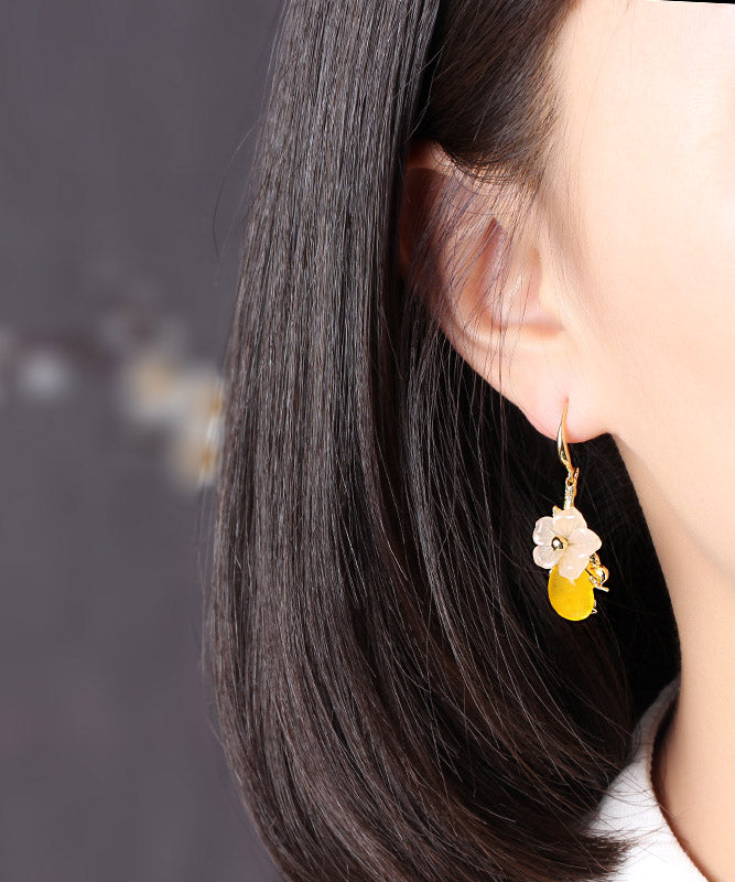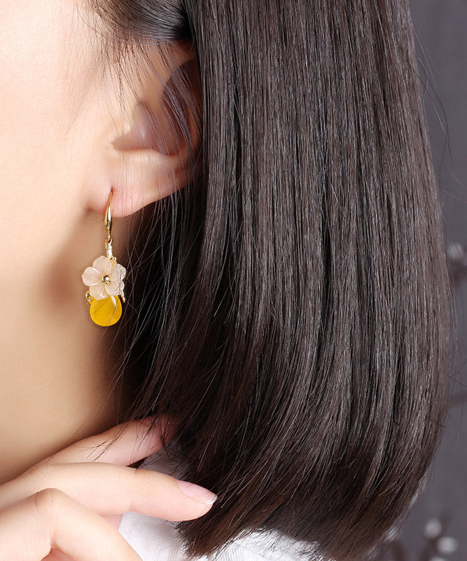 Stilvolle gelbe Overgild Synthetische Blumentropfen-Ohrringe