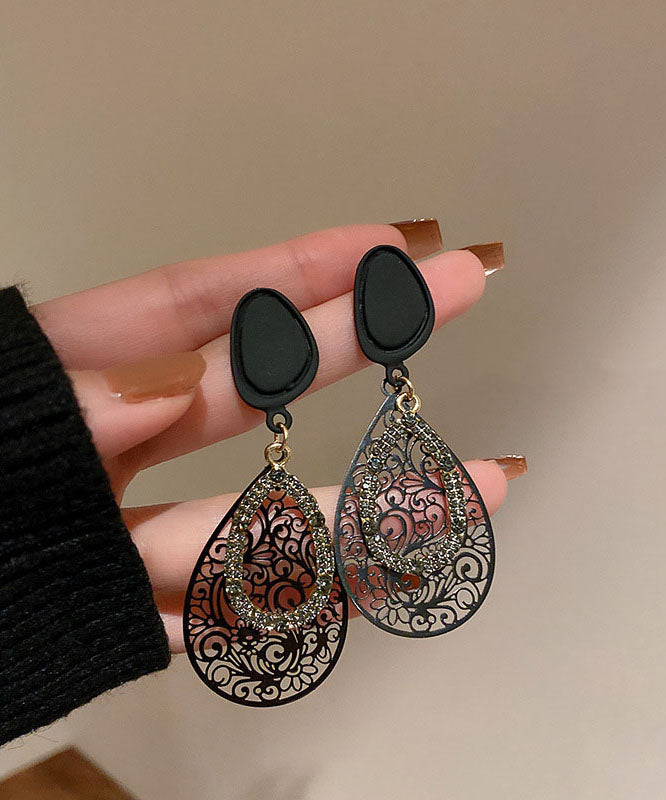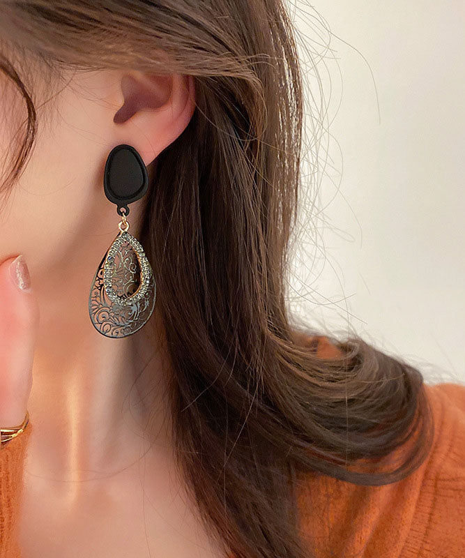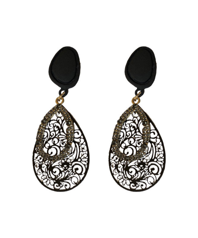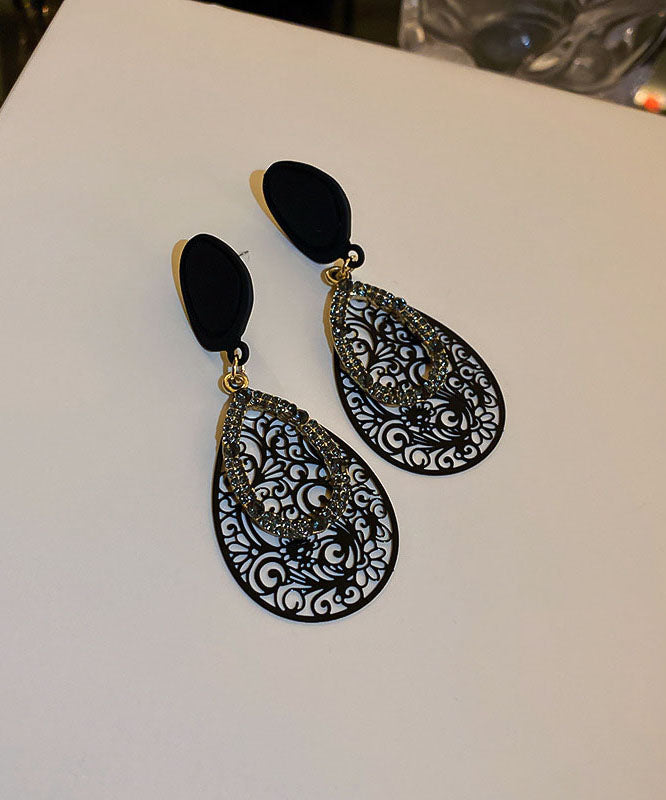 Einzigartige schwarze Zirkonia-Wassertropfen-Ohrringe mit ausgehöhlten Tropfen