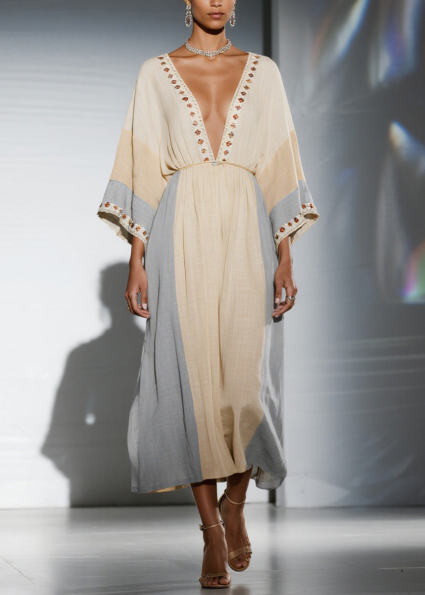 Unique Colorblock V Neck Patchwork Cotton Dress Summer