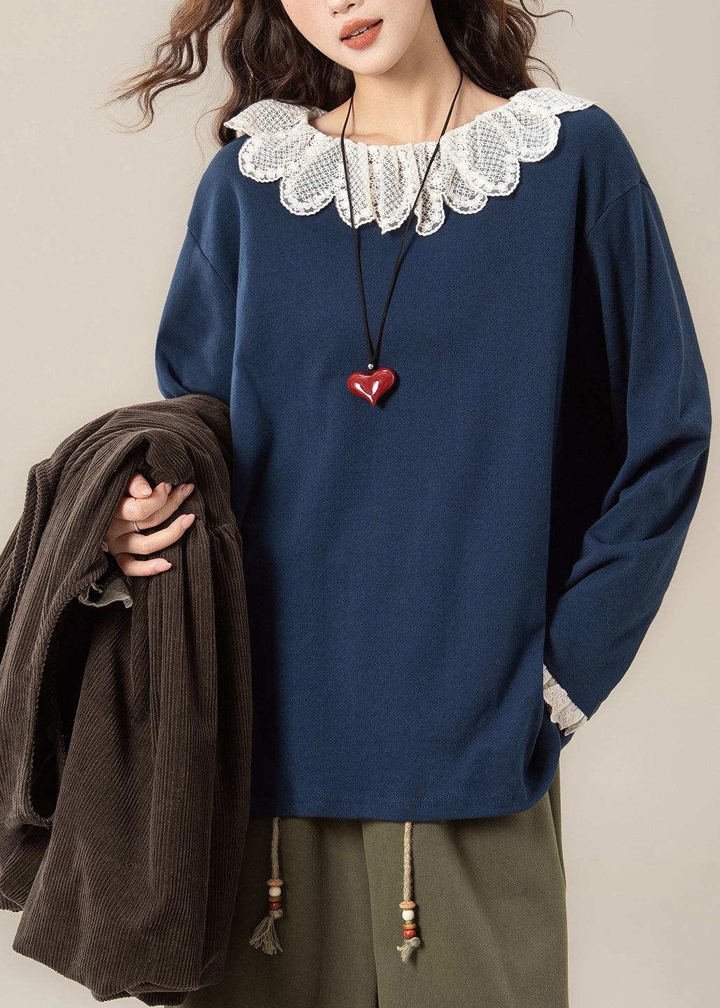 Einzigartige orangefarbene Oversize-Bluse mit Patchwork-Spitze, Frühlings-Design