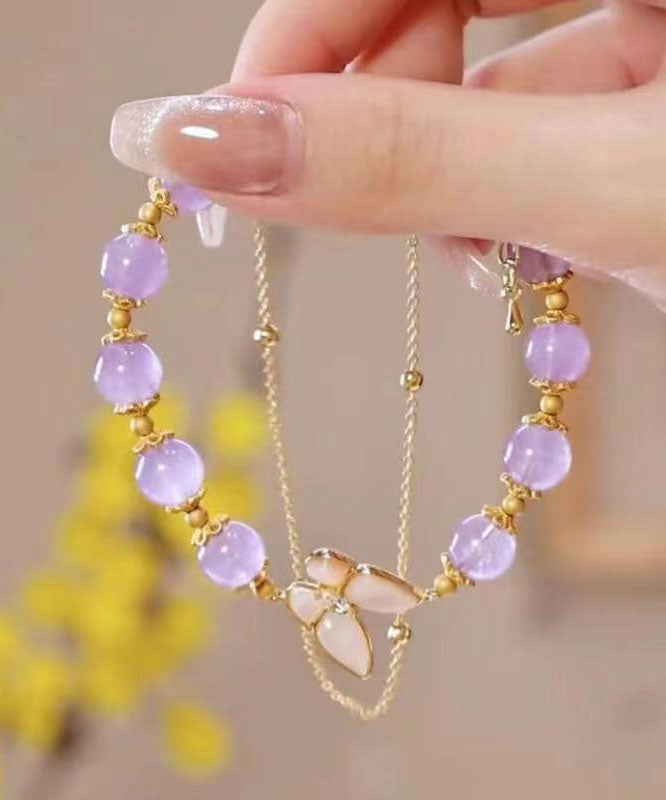 Einzigartiges, doppellagiges Kettenarmband mit violettem Kristall-Zirkon-Schmetterling