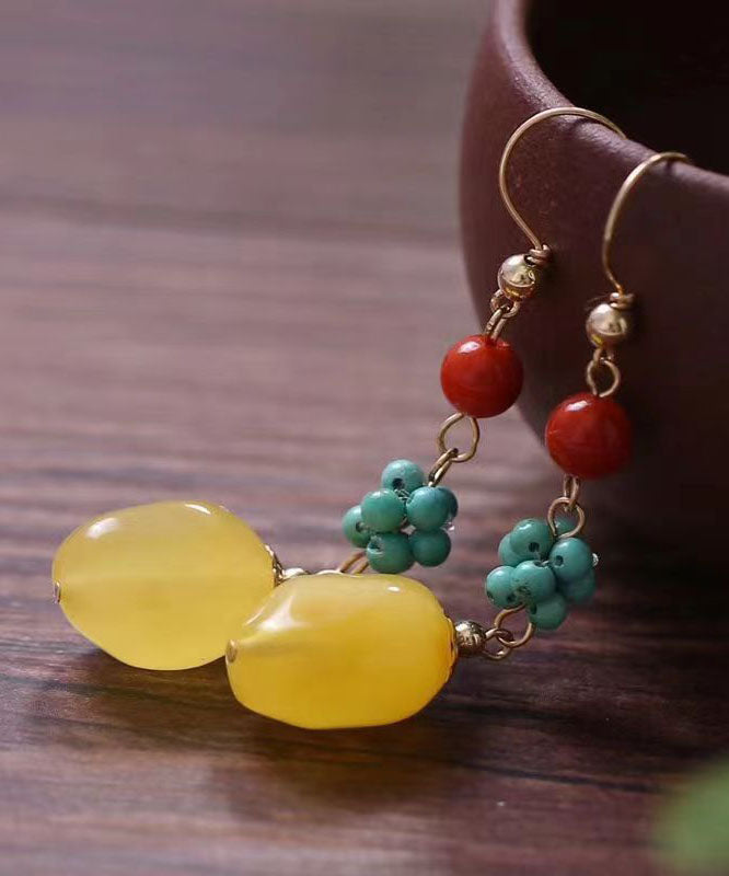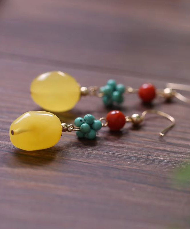 Einzigartige Sterling Silber Achat Bienenwachs Türkis Tropfen Ohrringe
