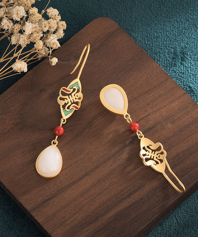 Einzigartige weiße antike Gold eingelegte Jade Emaille Tropfen Glasur Tropfen Ohrringe