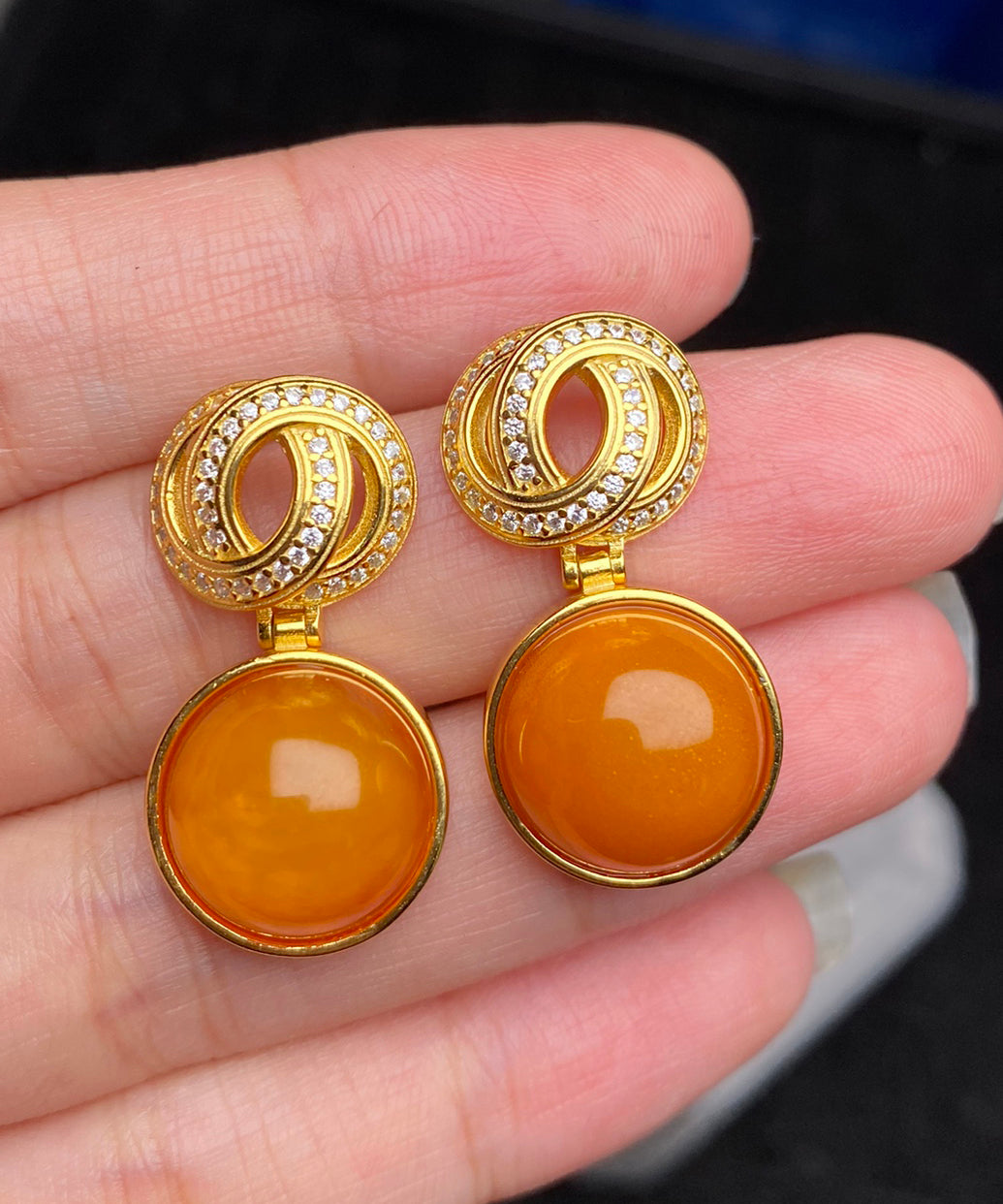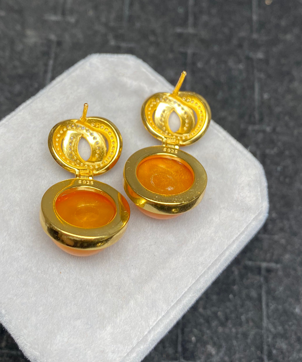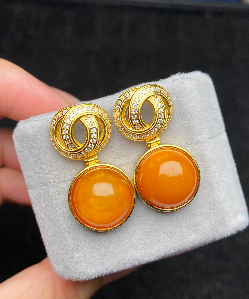 Einzigartige gelbe Tropfenohrringe aus Sterlingsilber mit Bienenwachs-Intarsien