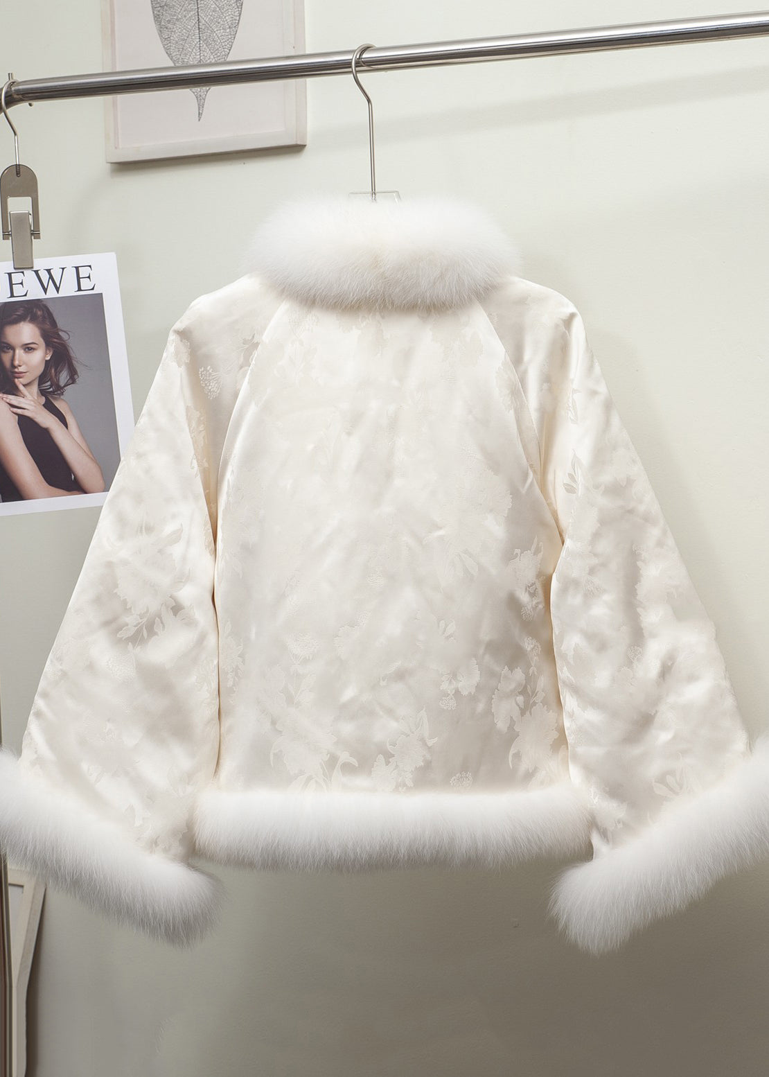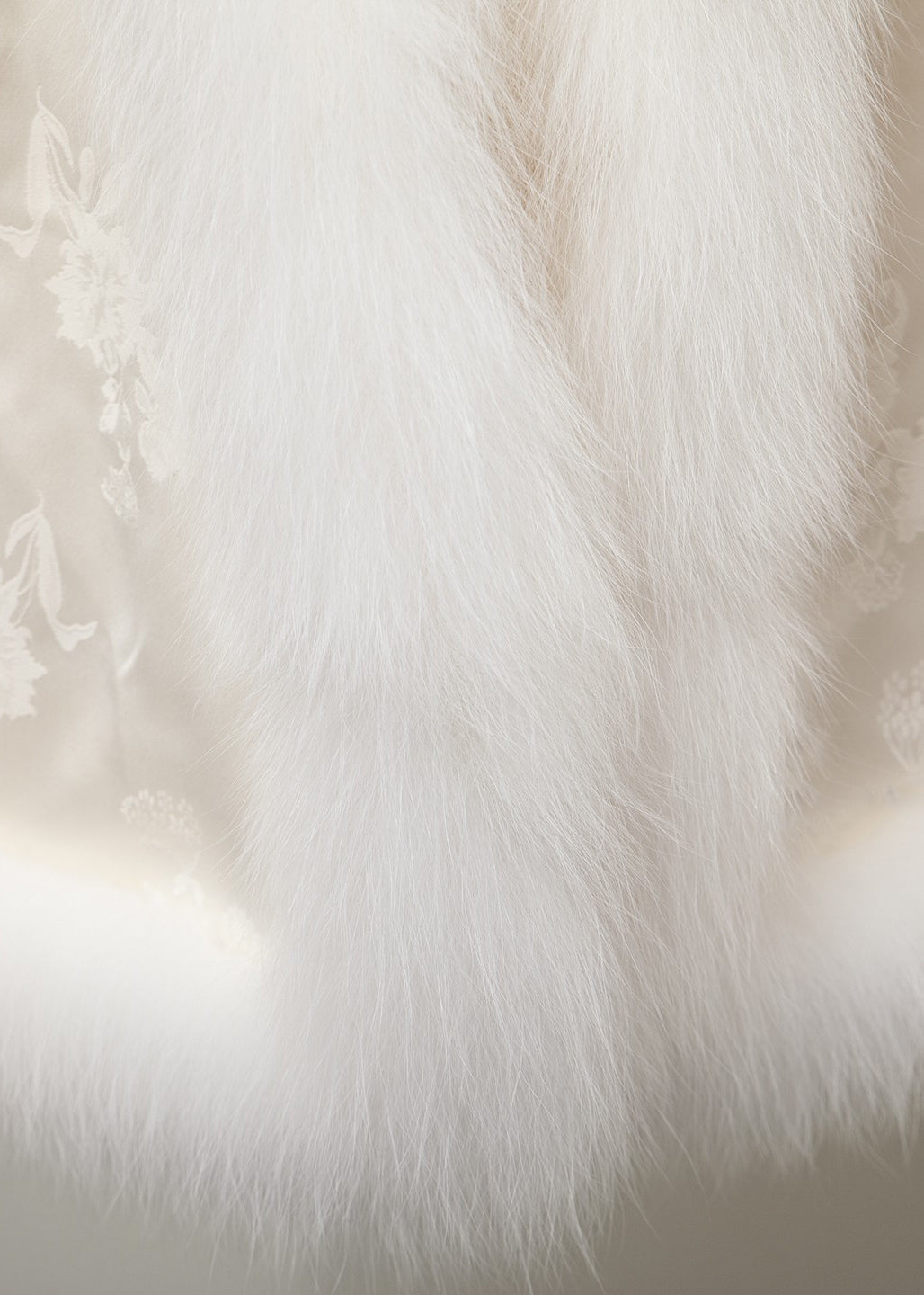 Vintage Wintermantel aus schwarzem Jacquard-Patchwork mit Fuchsfell und Entendaunen