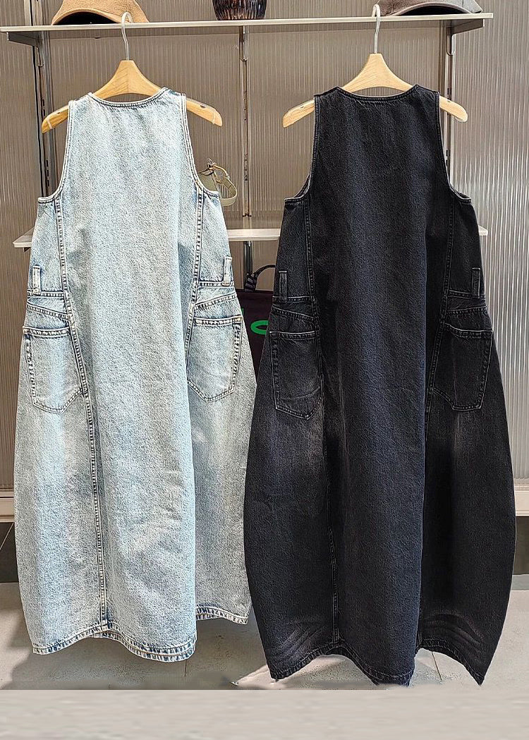 Schwarzes Vintage-Kleid mit Taschen im Originaldesign, ärmellos, lang und lang, mit originellem Design.