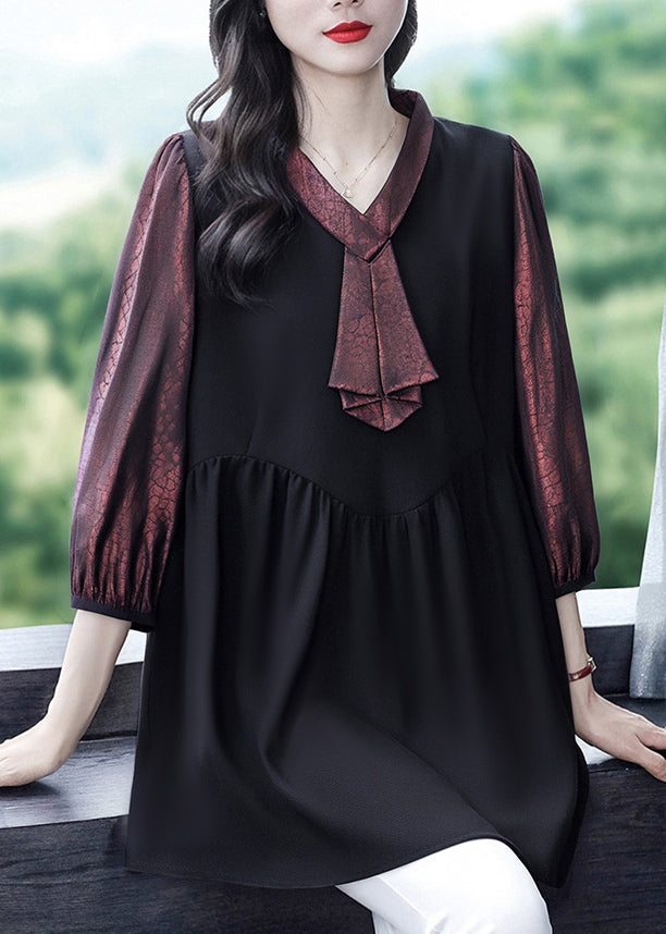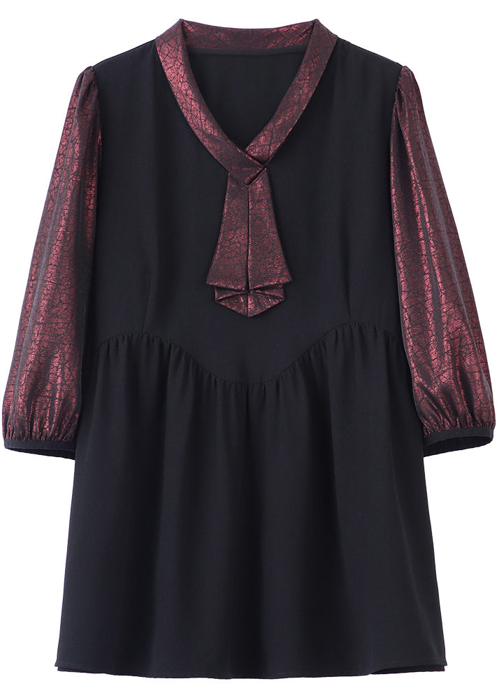 Vintage-Hemd mit herzförmigem Ausschnitt und Patchwork-Optik in mattem Rot, angedeutet zweiteilig, mit Armbandärmeln