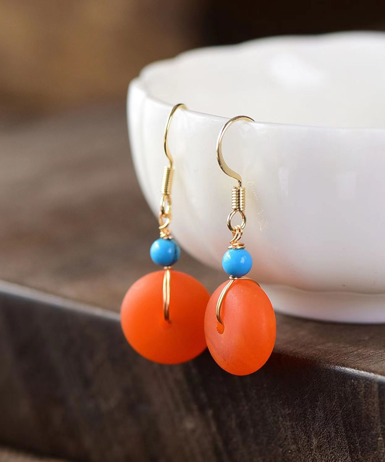 Vintage Orange Bernstein Silber Tropfen Ohrringe