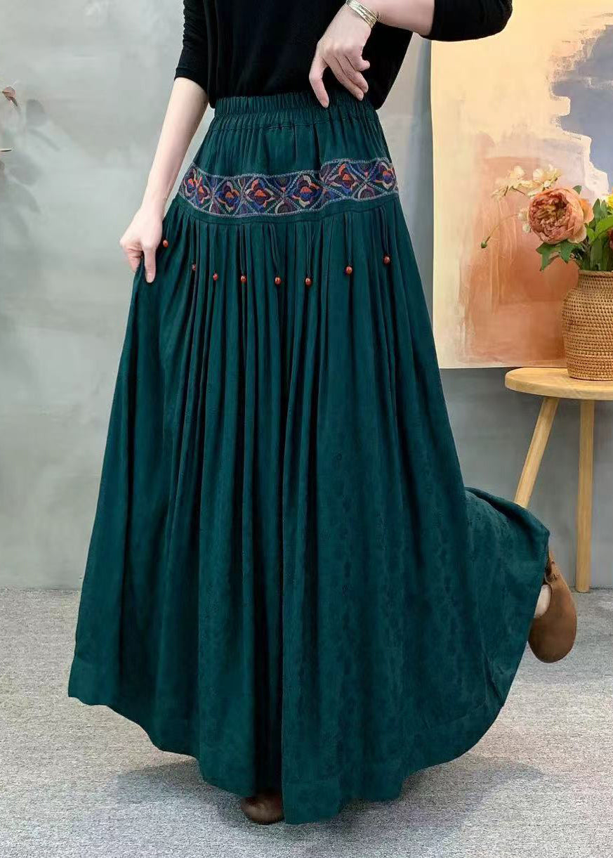 Vintage roter Jacquard-Seidenrock mit Stickerei, Faltenwurf und Taschen, Herbst