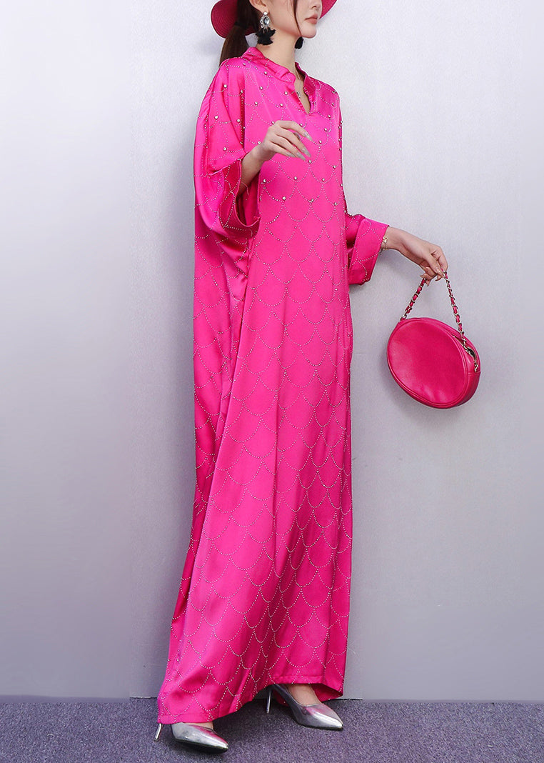 Vintage-Seidenkleid mit Rosenmuster und Strasssteinen, Fledermausärmeln