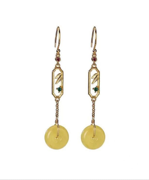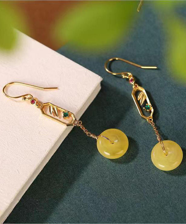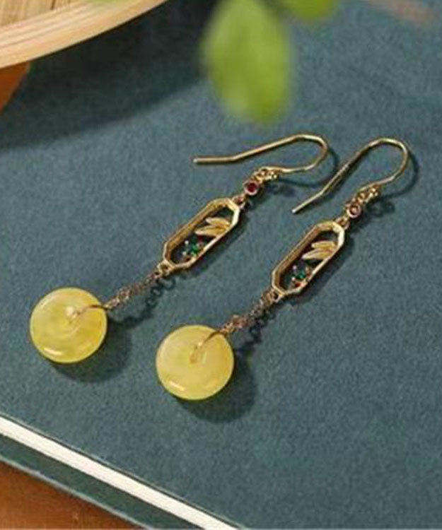 Vintage Gelb Sterling Silber Bienenwachs Bernstein Ping Schnalle Tropfen Ohrringe