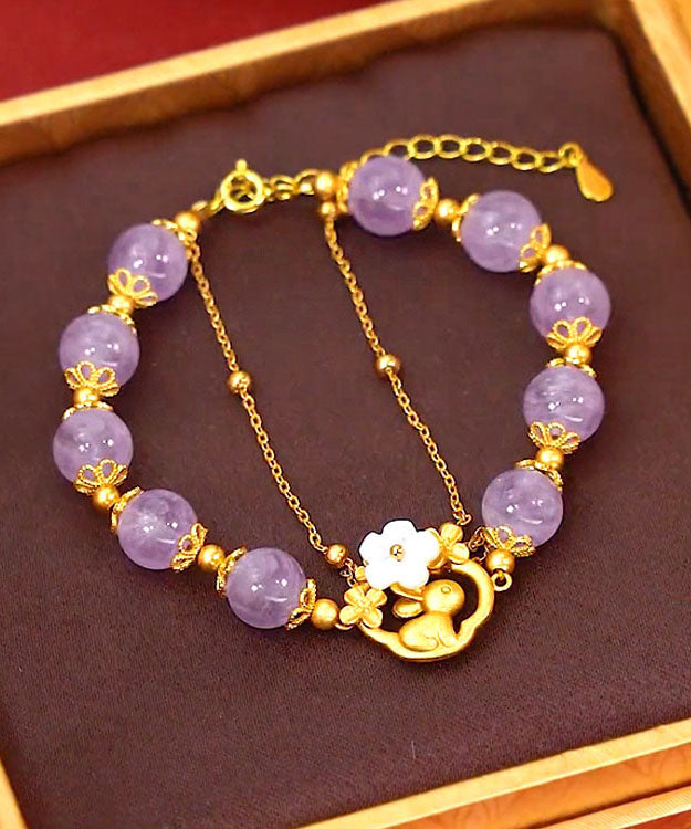 Vogue Lila Sterling Silber Overgold Intarsien Kristall Floral Kaninchen Kette Armband