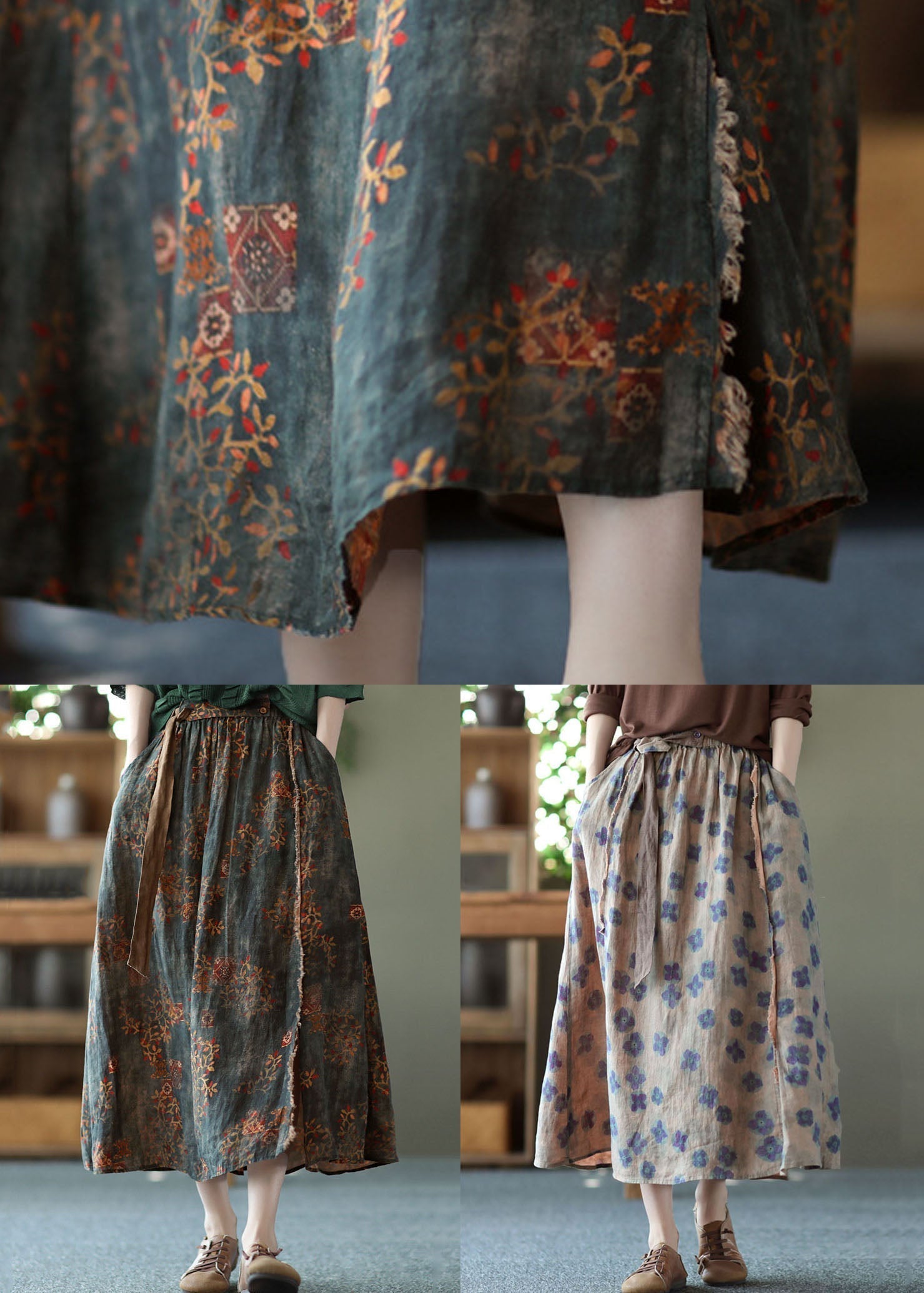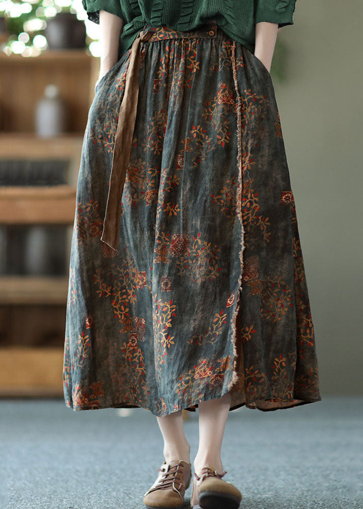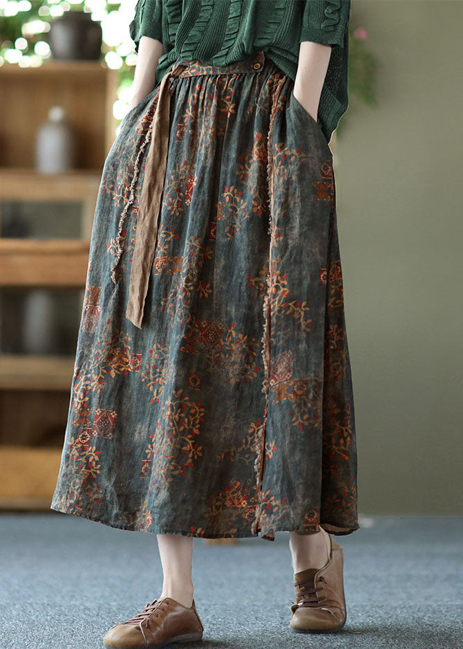 Frauen Schwärzlich Grün Faltig Taschen Patchwork Leinen Röcke Sommer