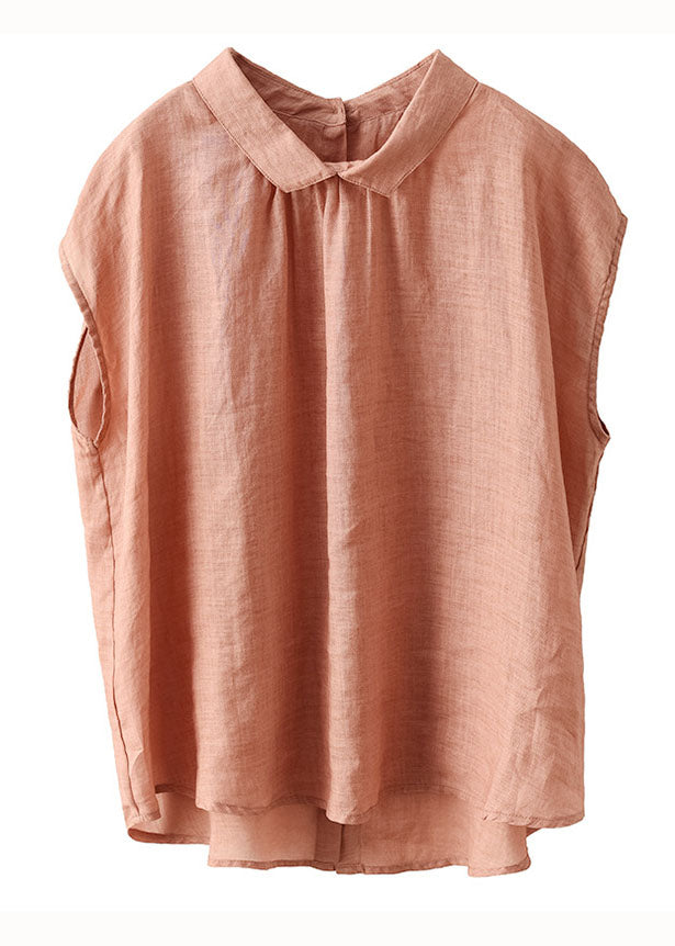 Frauen Orange Peter Pan Kragen Patchwork Leinen Blusen Sommer