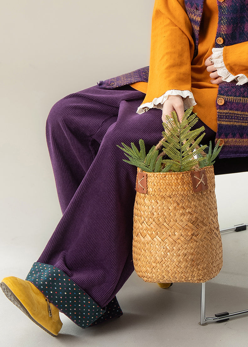 Damen Lila Punkte Hose mit elastischem Bund und weitem Bein Herbst