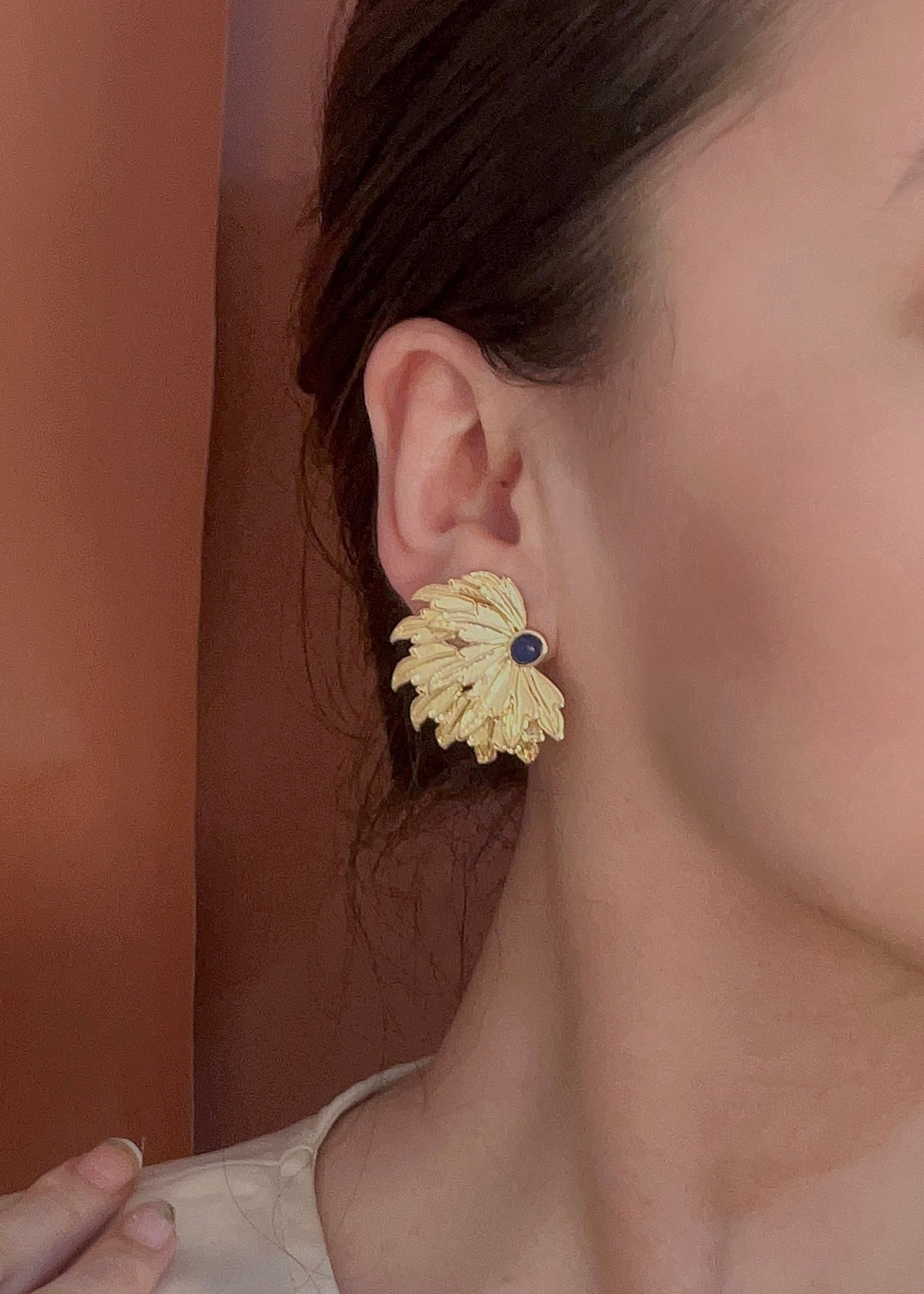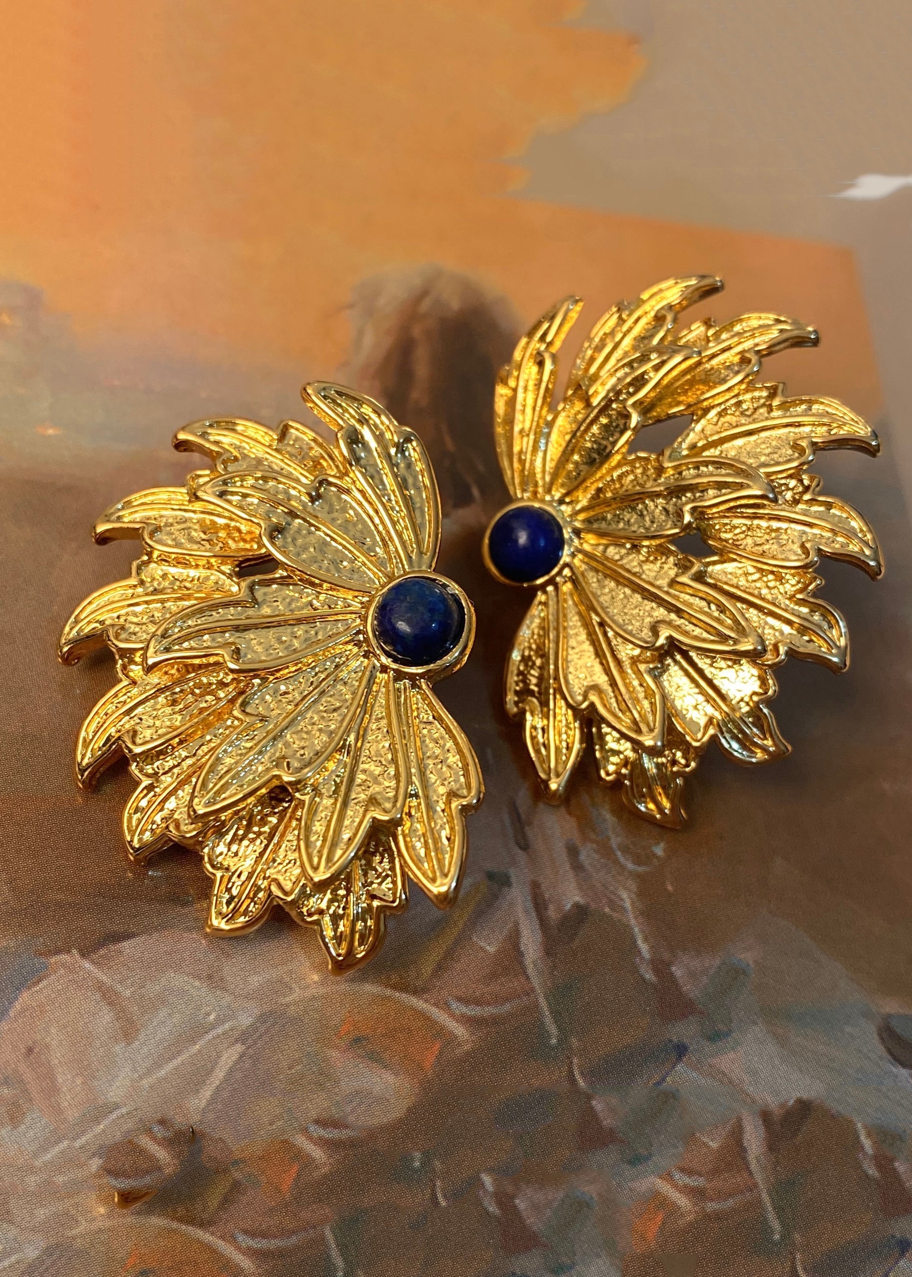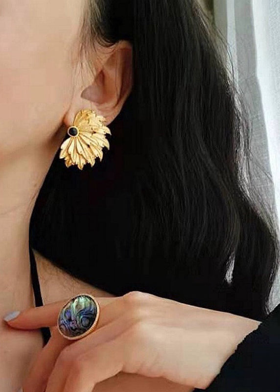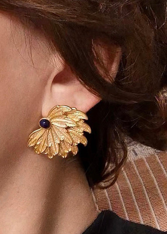 Damen Gelb Kupfer Overgild Intarsien Edelstein Ohrstecker