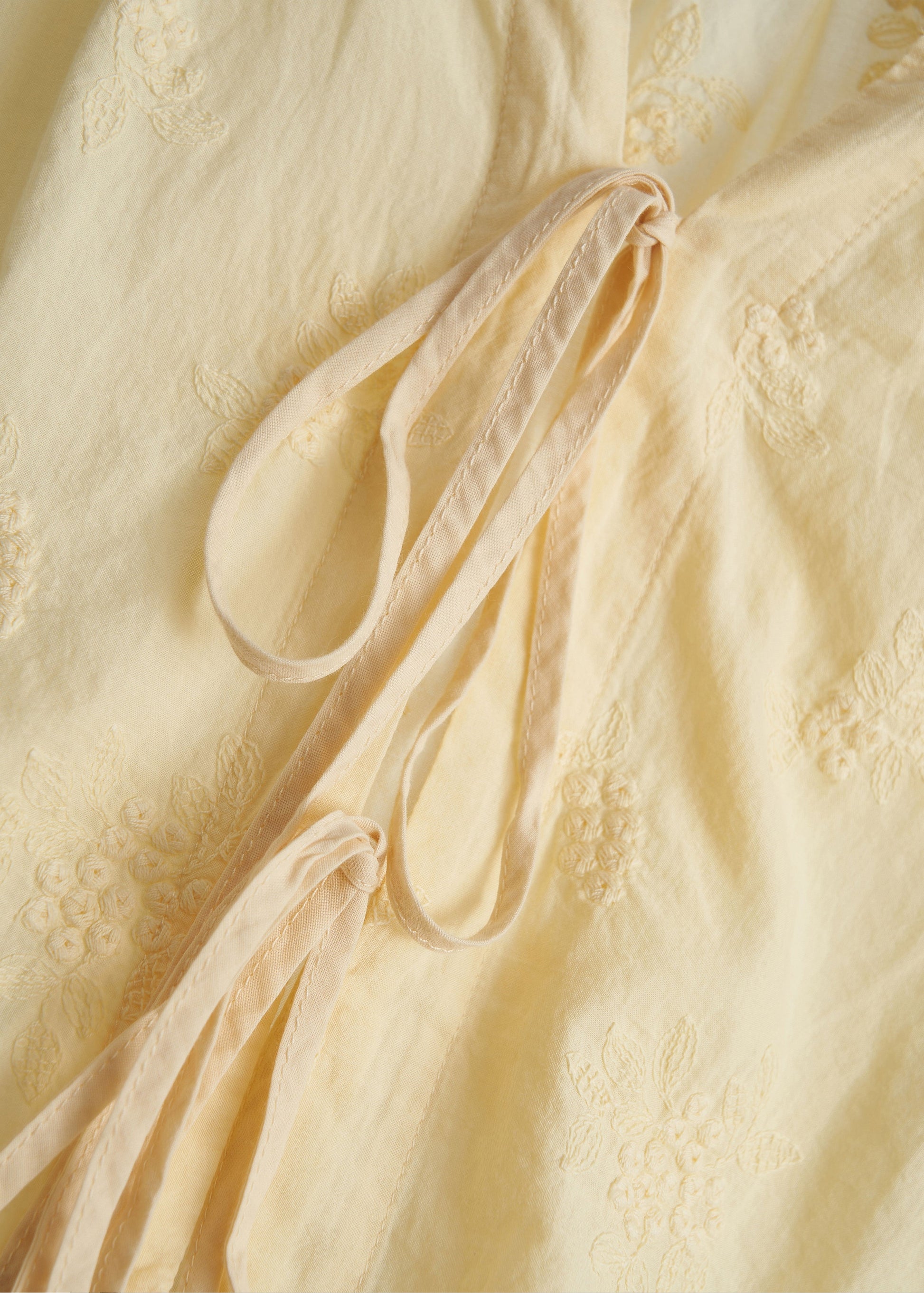 Gelbes, besticktes Baumwoll-Shirt mit Schnürung für Damen, Frühling