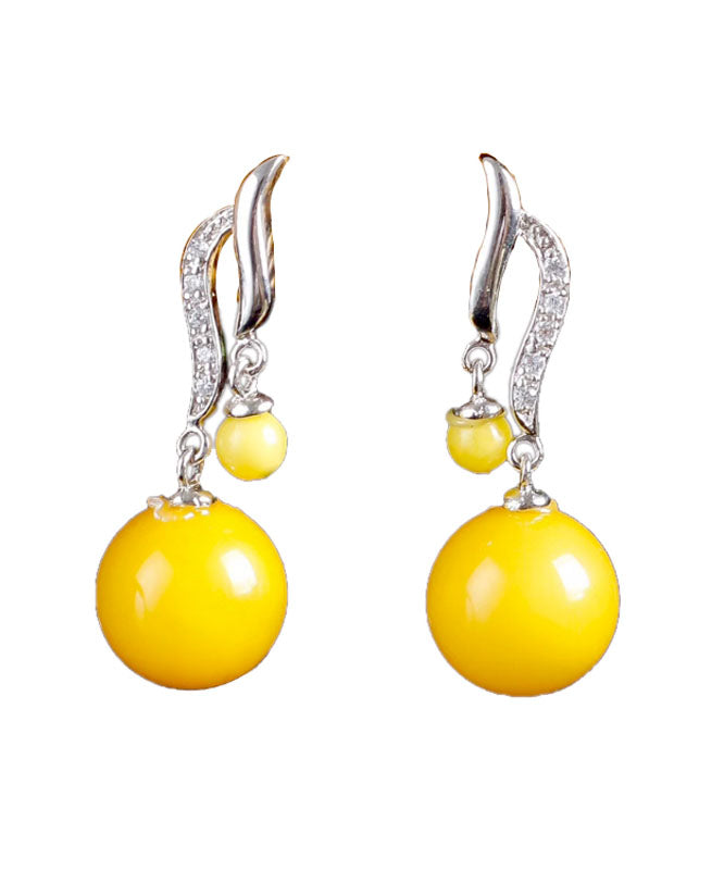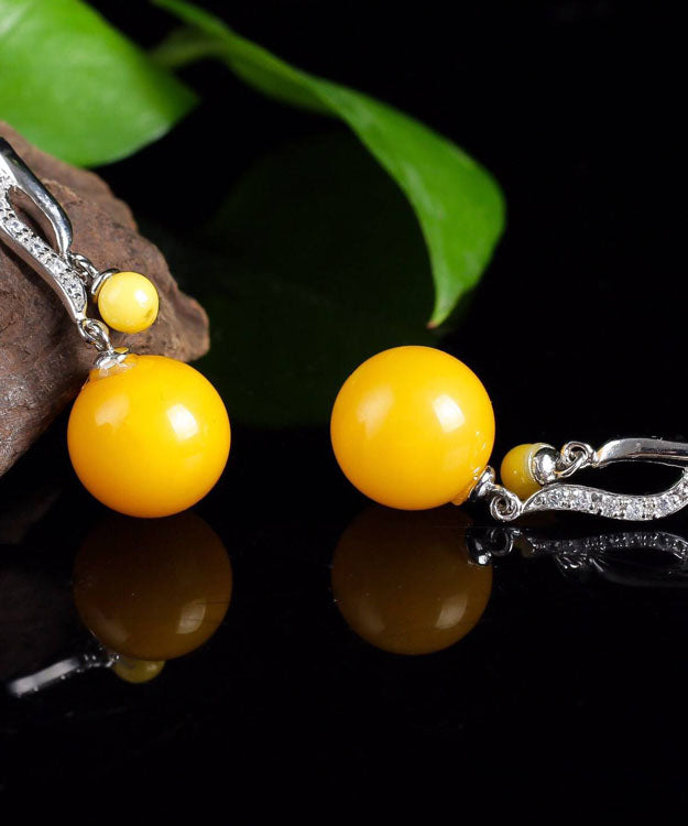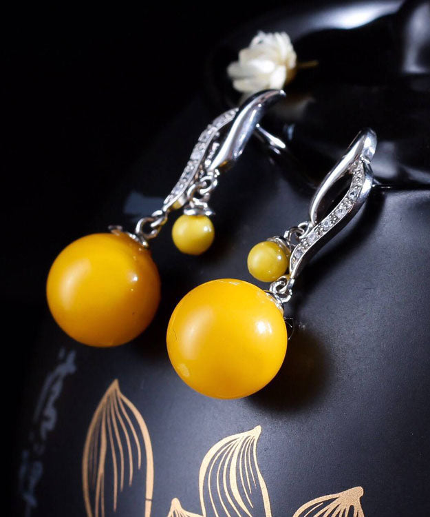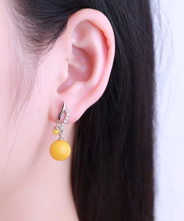 Gelbe Bienenwachs-Kugel-Ohrringe aus Sterlingsilber für Damen