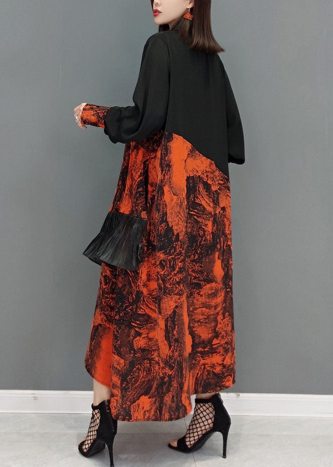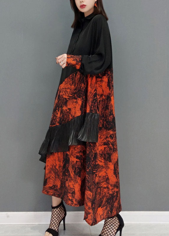 Art Red Peter Pan Collar print Patchwork Vacation Dresses Spring