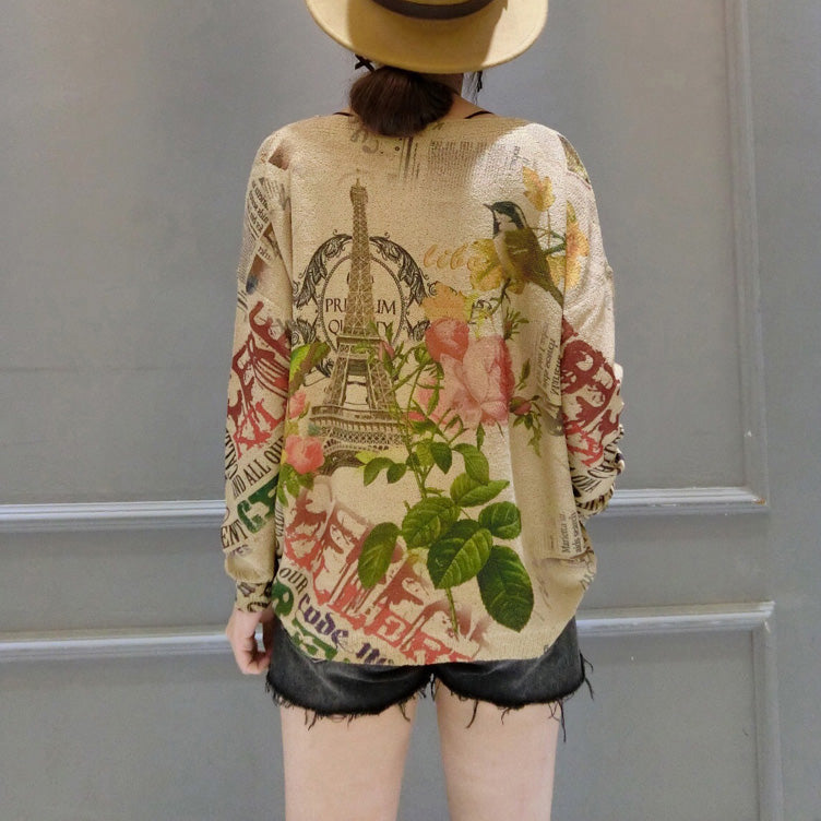 autumn plus size fashion bird prints sweater tops casual o neck women knit pullover