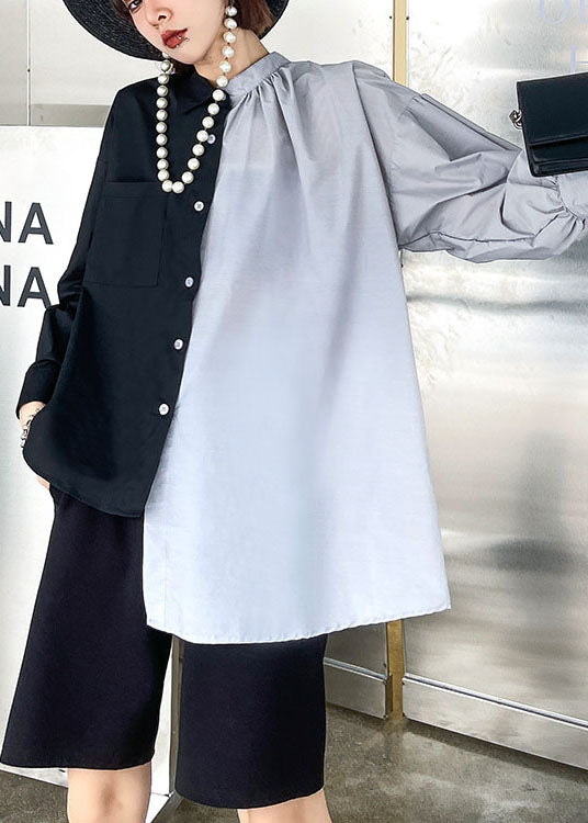 Beautiful Black Patchwork Button asymmetrical design Fall Long sleeve Shirt Top