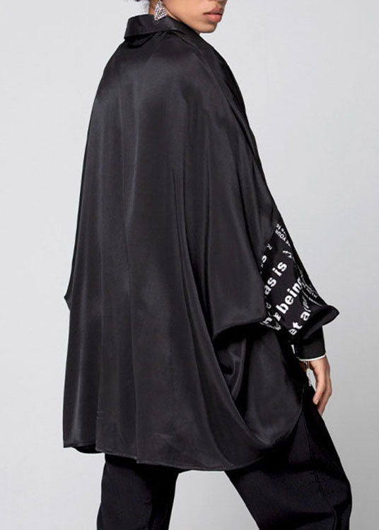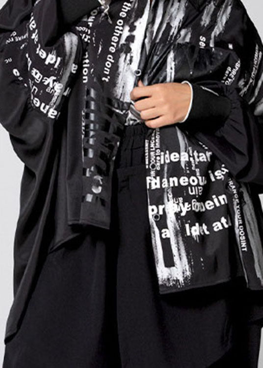 Beautiful Black Peter Pan Collar Print Cotton Shirts Spring