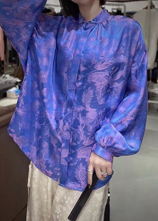 Beautiful Green Stand Collar Patchwork Jacquard Silk Blouses Fall