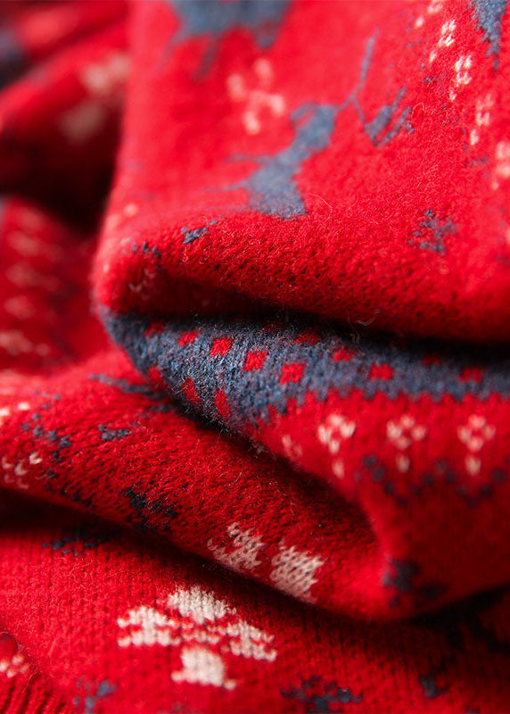 Beautiful Red O-Neck Brief Casual Loose Fall Sweater