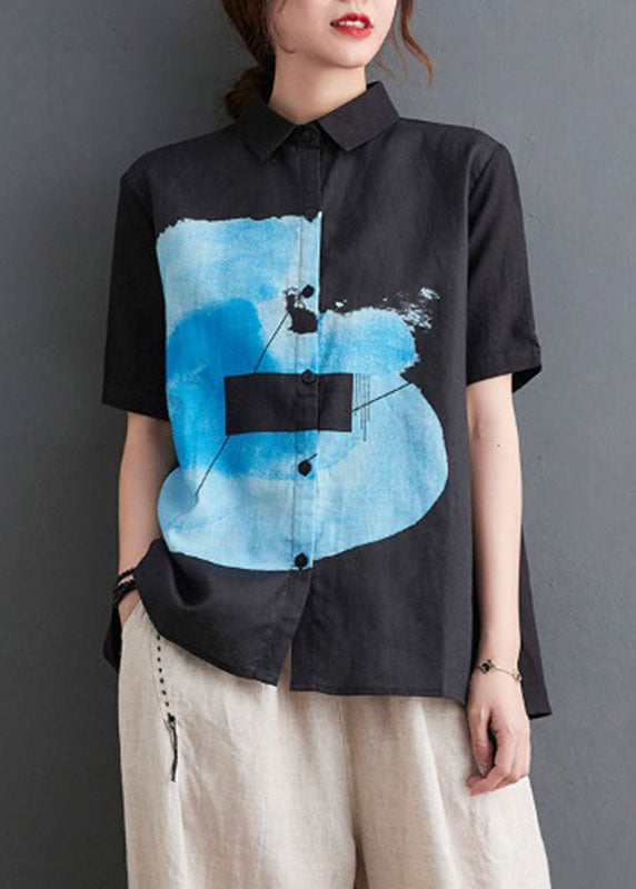 Beautiful White PeterPan Collar Button Print Fall Half Sleeve Shirt Top