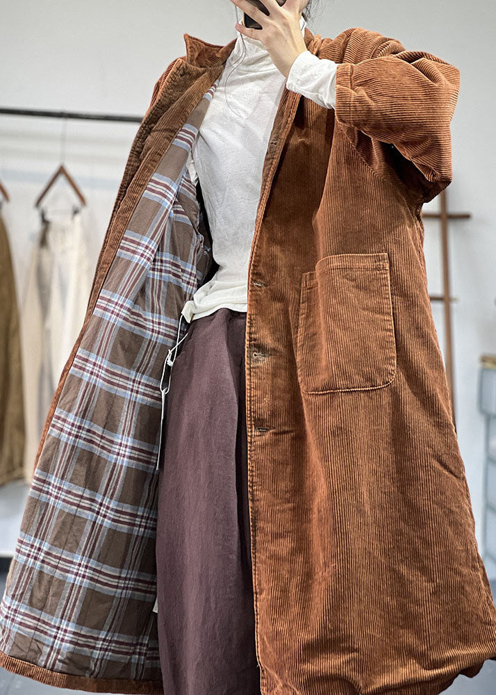 Beautiful Yellow Oversized Pockets Cotton Filled Corduroy Trench Winter
