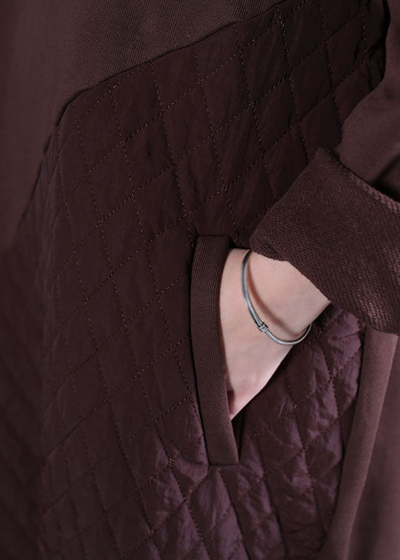 Bohemian Chocolate Turtle Neck Patchwork Cotton Dresses Spring