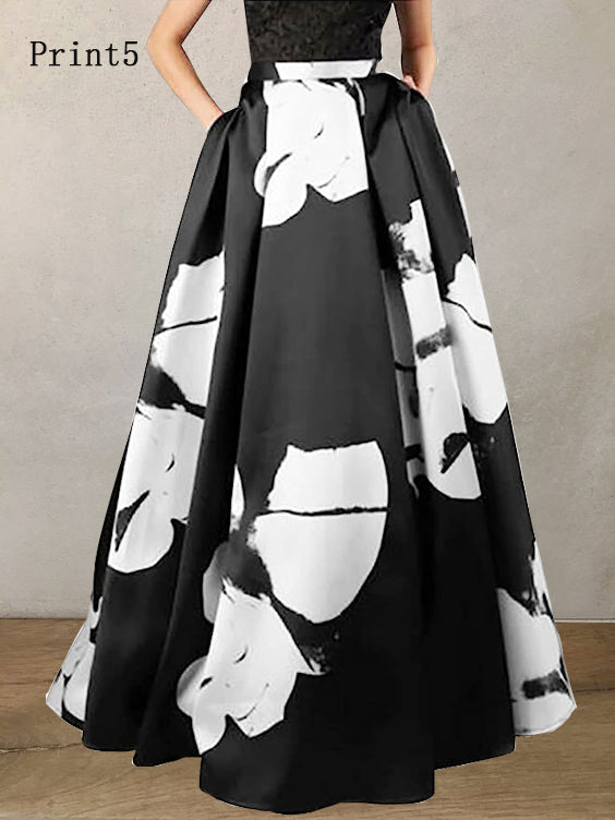 Bohemian Yellow High Waist Pockets Floral Print Cotton A Line Skirt Summer