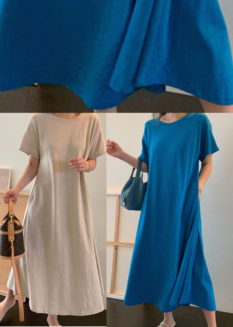 Boho Beige Loose Cotton Maxi Dress Short Sleeve