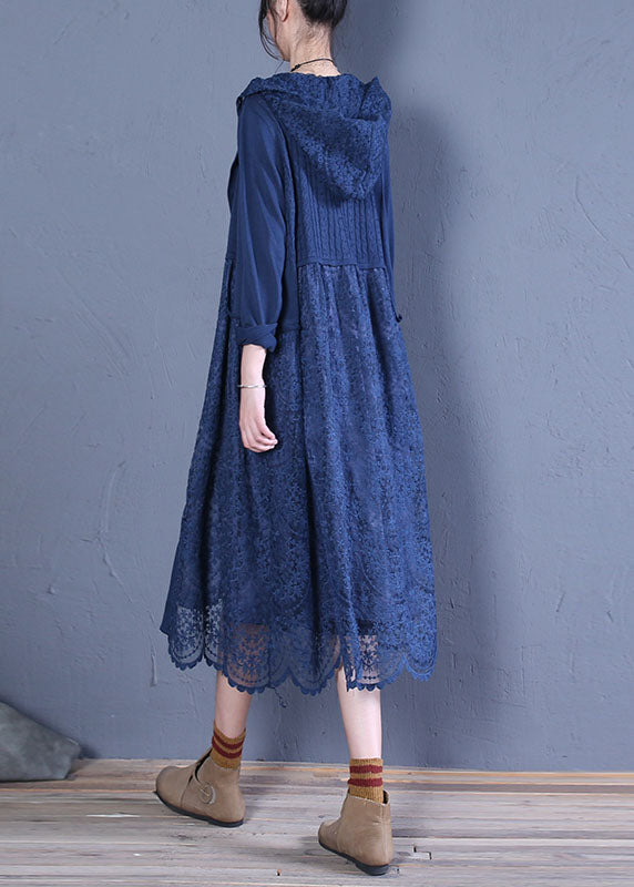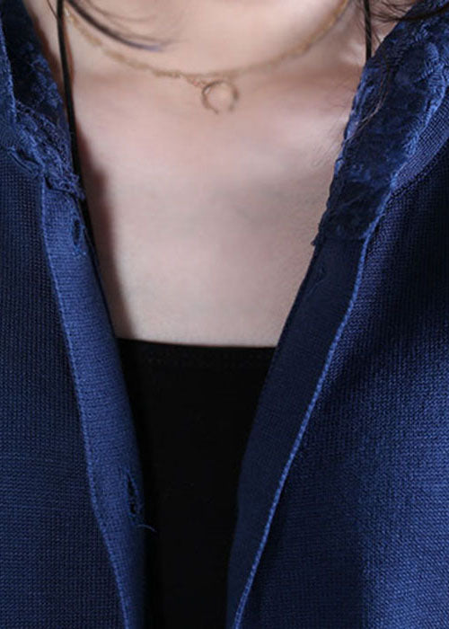 Boho Black Hooded Lace Patchwork Cardigans Spring