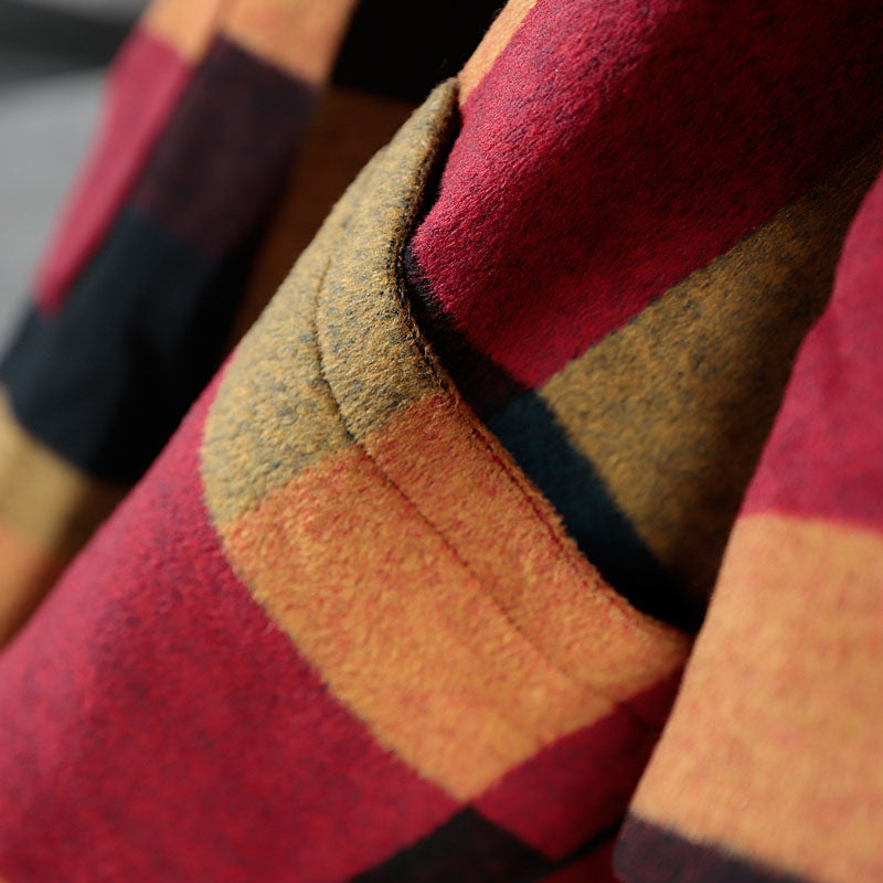 Boutique Yellow Plaid Pockets Button Fall Coat Long Sleeve
