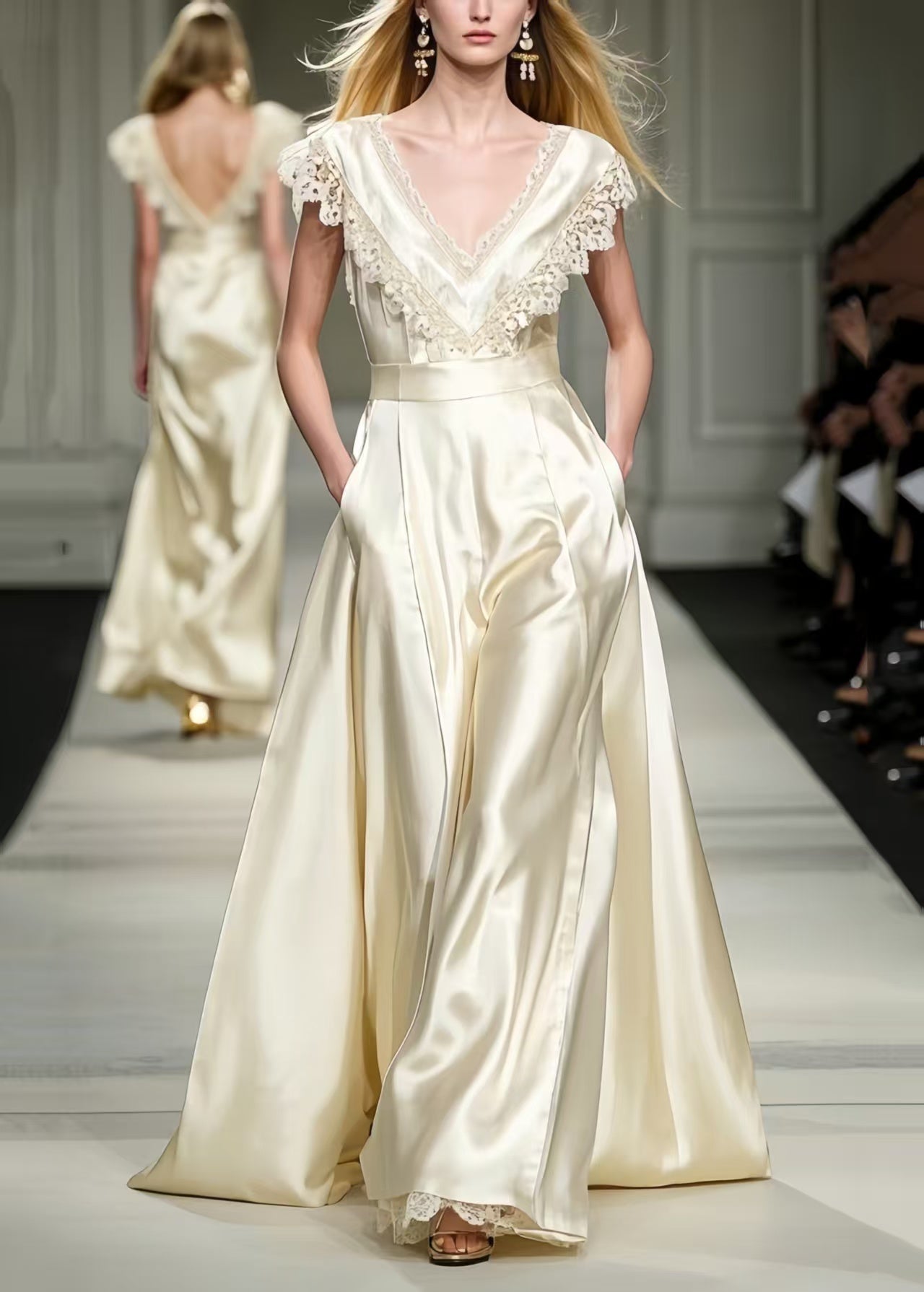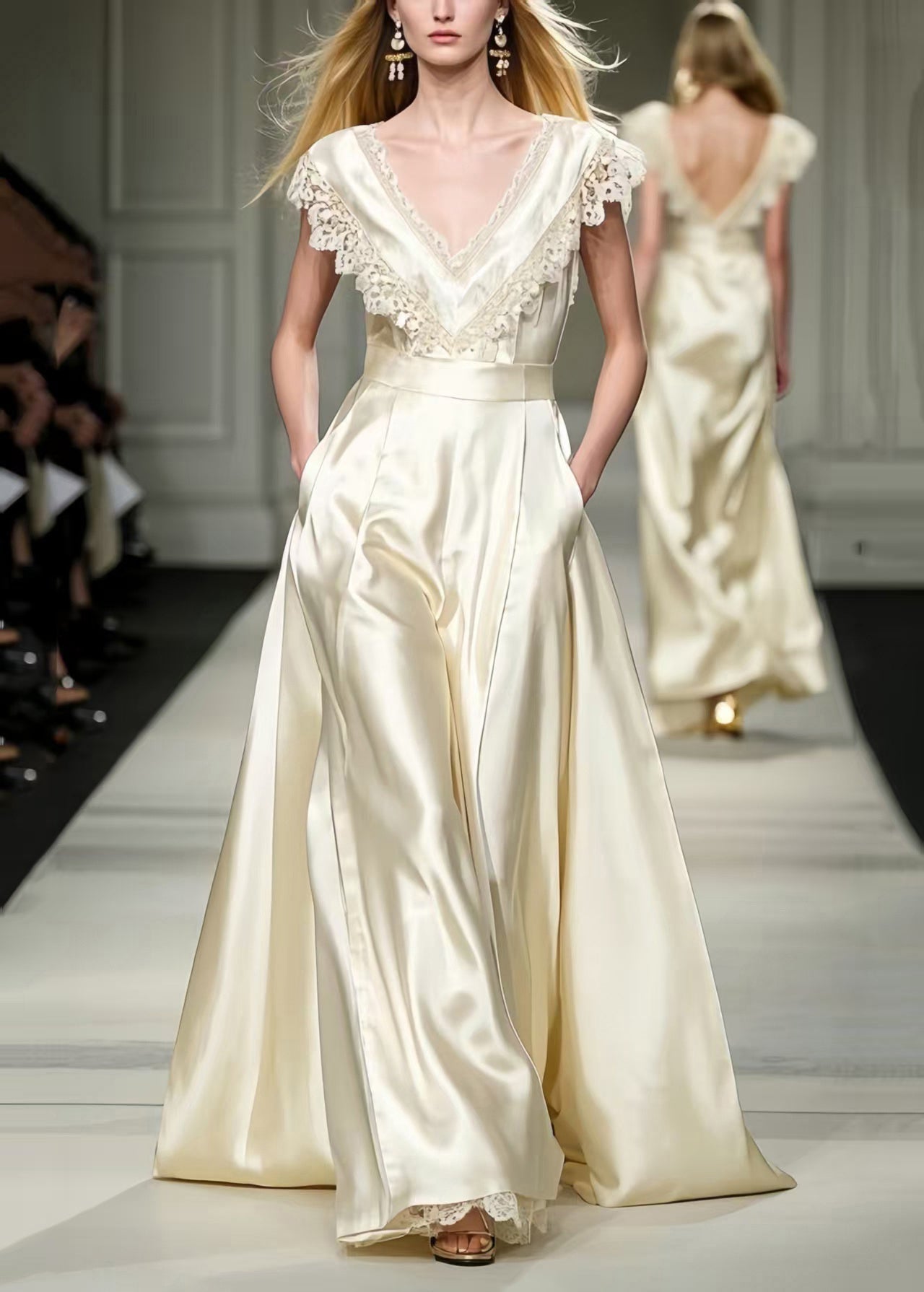 Champagne Patchwork Lace Party Dresses Exra Large Hem Summer