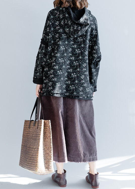Chic Black Hooded side open Cotton Pullover Street wear Spring
