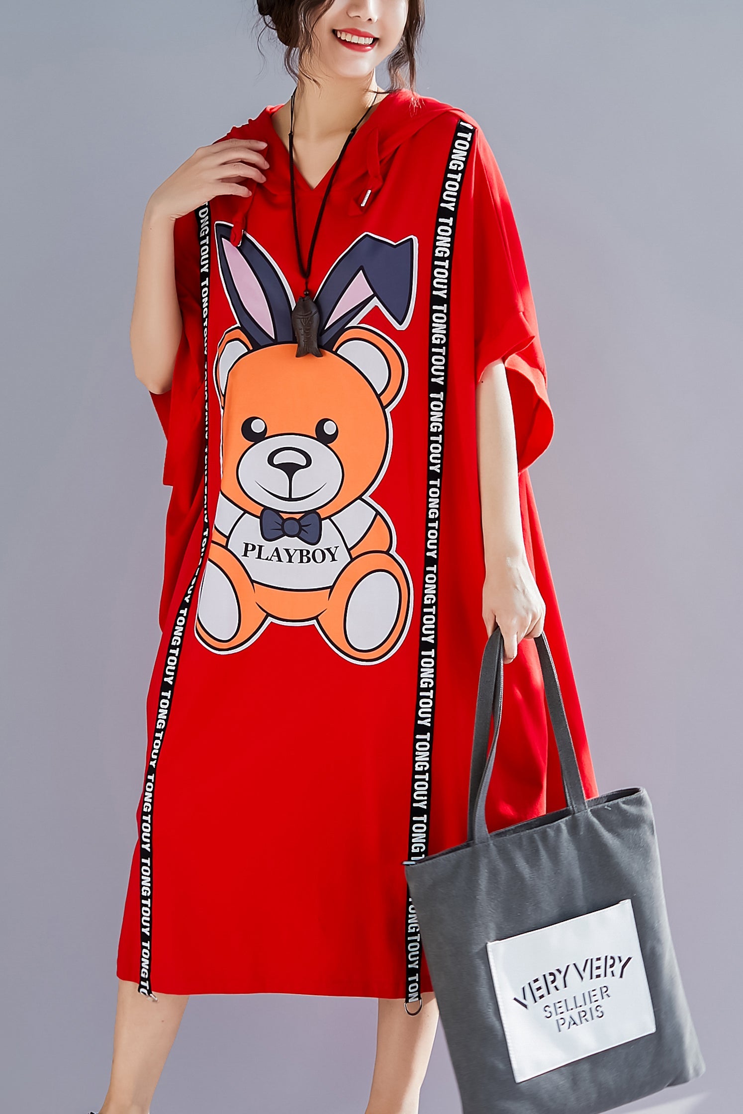 Chic red print cotton clothes Organic Sleeve o neck Half sleeve Maxi Summer Dress