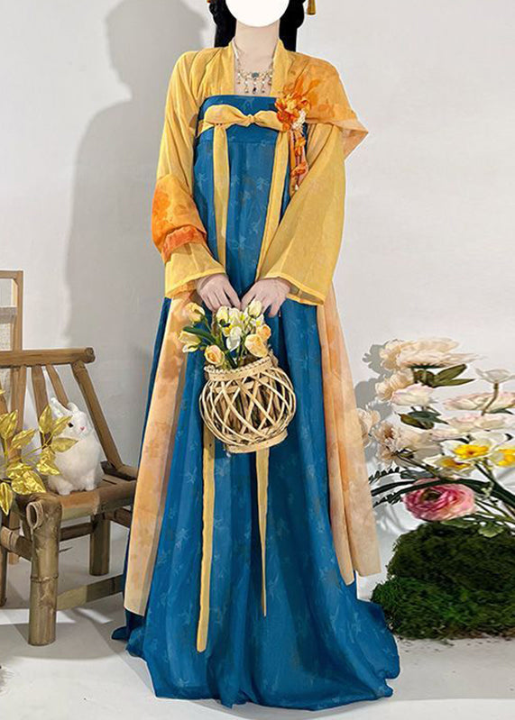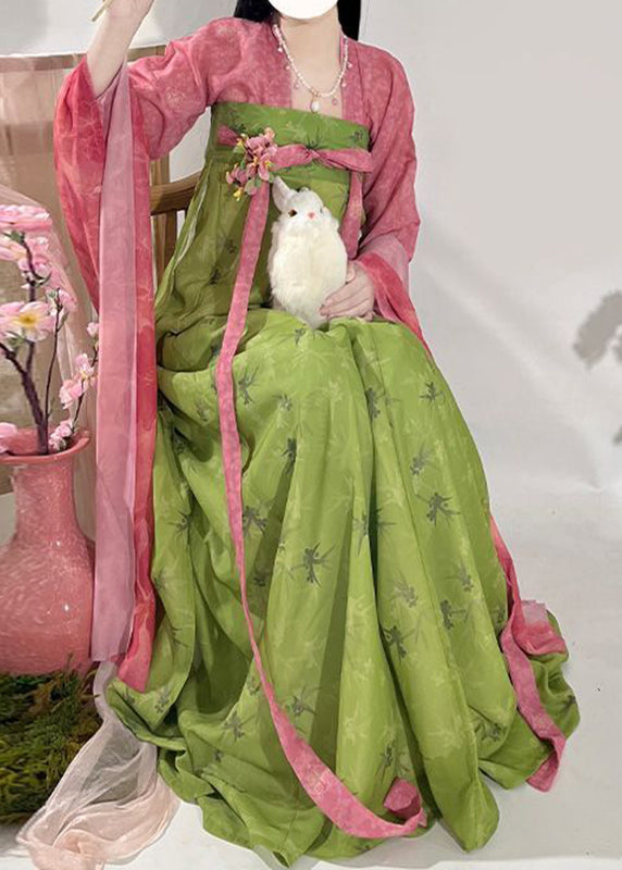 Chinese Style Red Print Top And Maxi Skirts Two Piece Set Fall