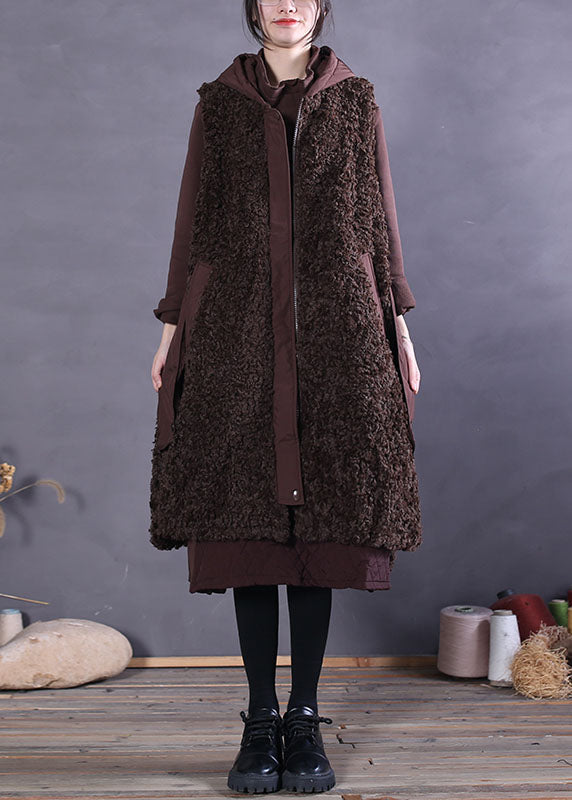 Chocolate Faux Fur Casual Beach Vest Zip Up Sleeveless