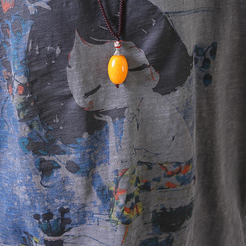 Elegant cotton summer top plus size Loose Gray Casual High-Low Hem Summer Suit