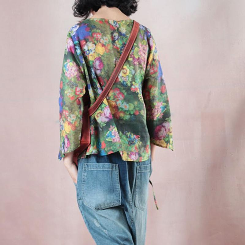 Elegant summer t shirt plus size clothing Green Lacing V-neck Ramie Women Blouse
