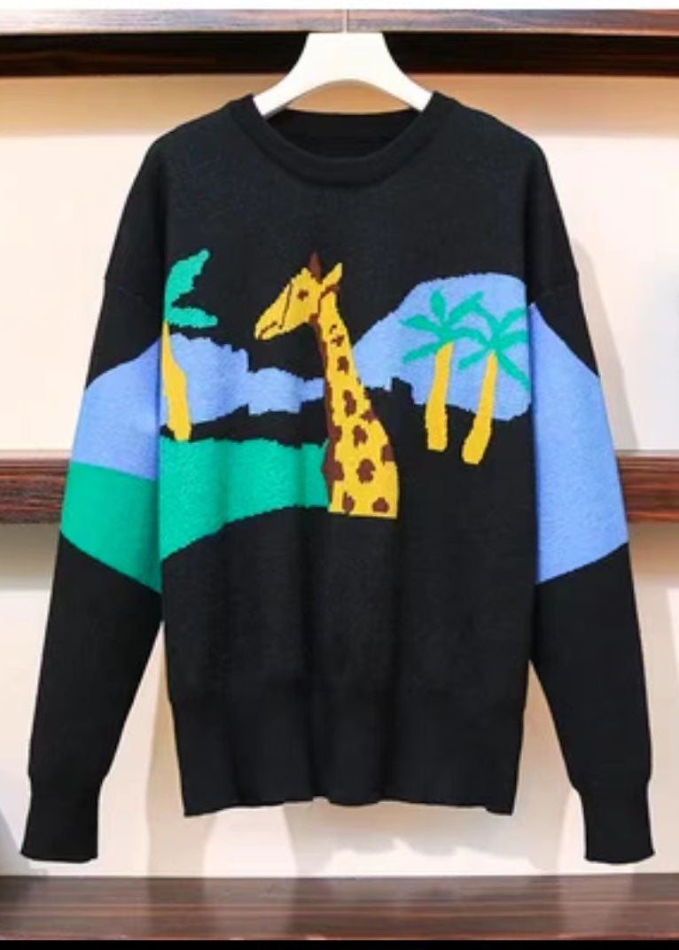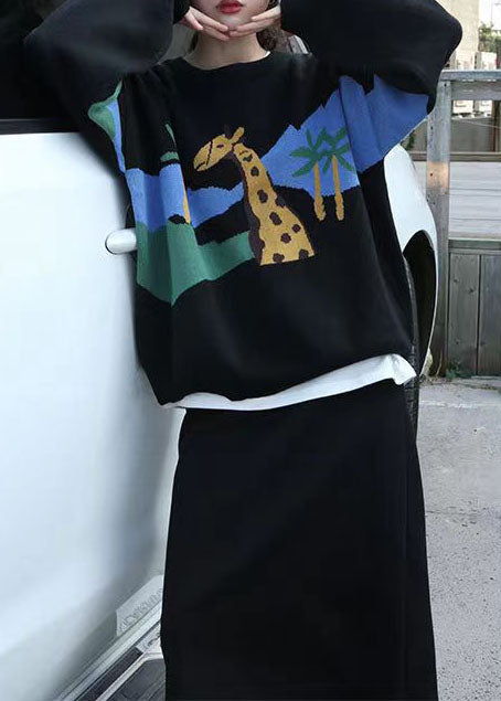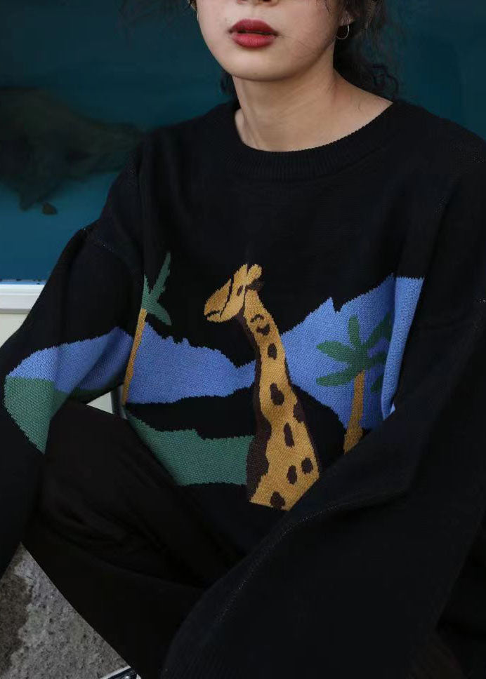 Fashion black knitted t shirt high neck Loose fitting spring knitted blouse