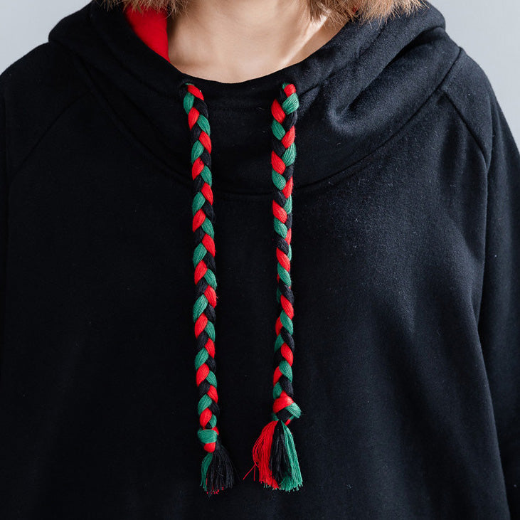 fashion black Midi cotton dresses oversized knee dresses hooded traveling clothing thick